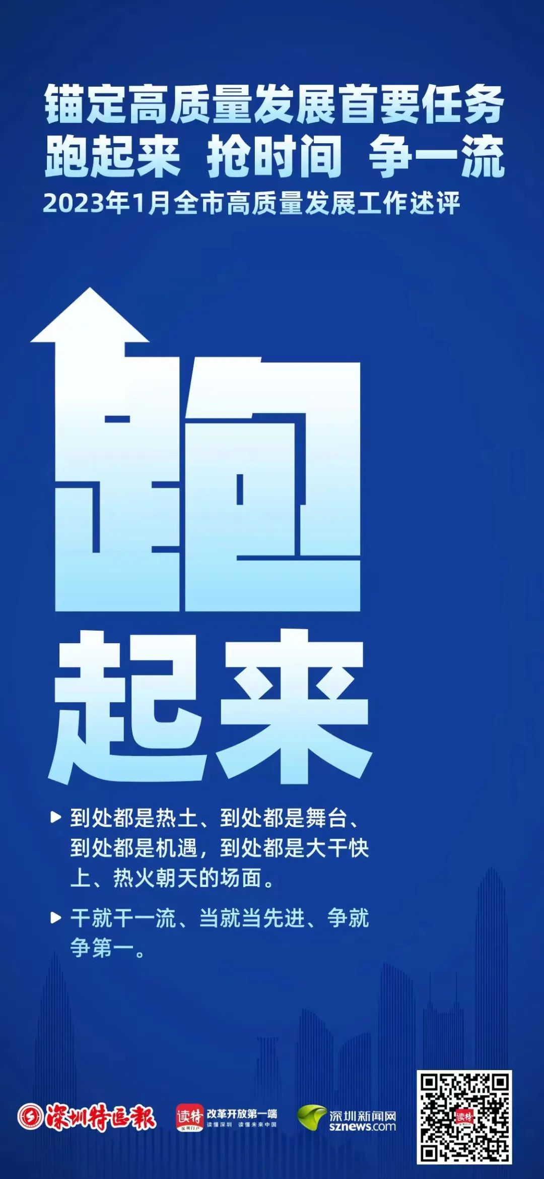 發(fā)展是第一要?jiǎng)?wù),是當(dāng)前最重要的工作。人勤春來(lái)早。深圳全面系統(tǒng)深入學(xué)習(xí)貫徹黨的二十大精神、中央經(jīng)濟(jì)工作會(huì)議精神,深入學(xué)習(xí)貫徹習(xí)近平總書(shū)記對(duì)廣東、深圳系列重要講話和重要指示精神,落實(shí)全省高質(zhì)量發(fā)展大會(huì)精神和省委省政府部署要求,動(dòng)起來(lái)、跑起來(lái)、幹起來(lái):市委經(jīng)濟(jì)工作會(huì)議謀定全年經(jīng)濟(jì)「施工圖」,全市高質(zhì)量發(fā)展大會(huì)擂響奮鬥戰(zhàn)鼓,集中開(kāi)工266個(gè)重大項(xiàng)目促發(fā)展強(qiáng)後勁,主要領(lǐng)導(dǎo)同志既走訪大企業(yè),也與中小微企業(yè)、個(gè)體工商戶(hù)充分交流,共商做強(qiáng)做優(yōu)做大市場(chǎng)主體大計(jì),市區(qū)政府紛紛走出去奔赴全球招商引資、招才引智……