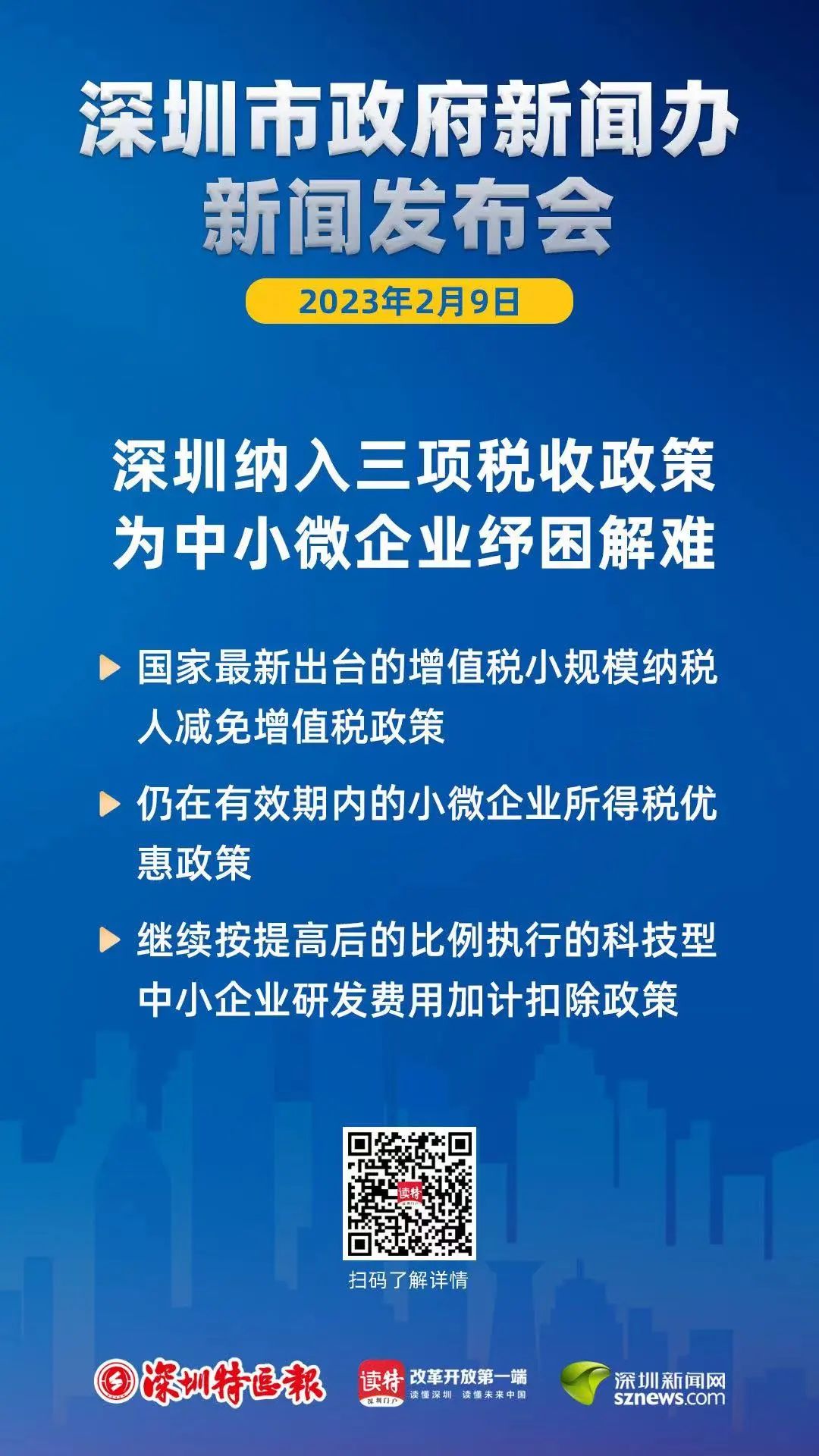 2月9日,深圳市政府新聞辦召開「支持中小微企業(yè)和個體工商戶發(fā)展有關(guān)政策」新聞發(fā)布會,深圳市工業(yè)和信息化局(市中小企業(yè)服務(wù)局)、市商務(wù)局、市市場監(jiān)管局、國家稅務(wù)總局深圳市稅務(wù)局等多個部門負(fù)責(zé)人解讀了政策內(nèi)容,並回答記者提問。