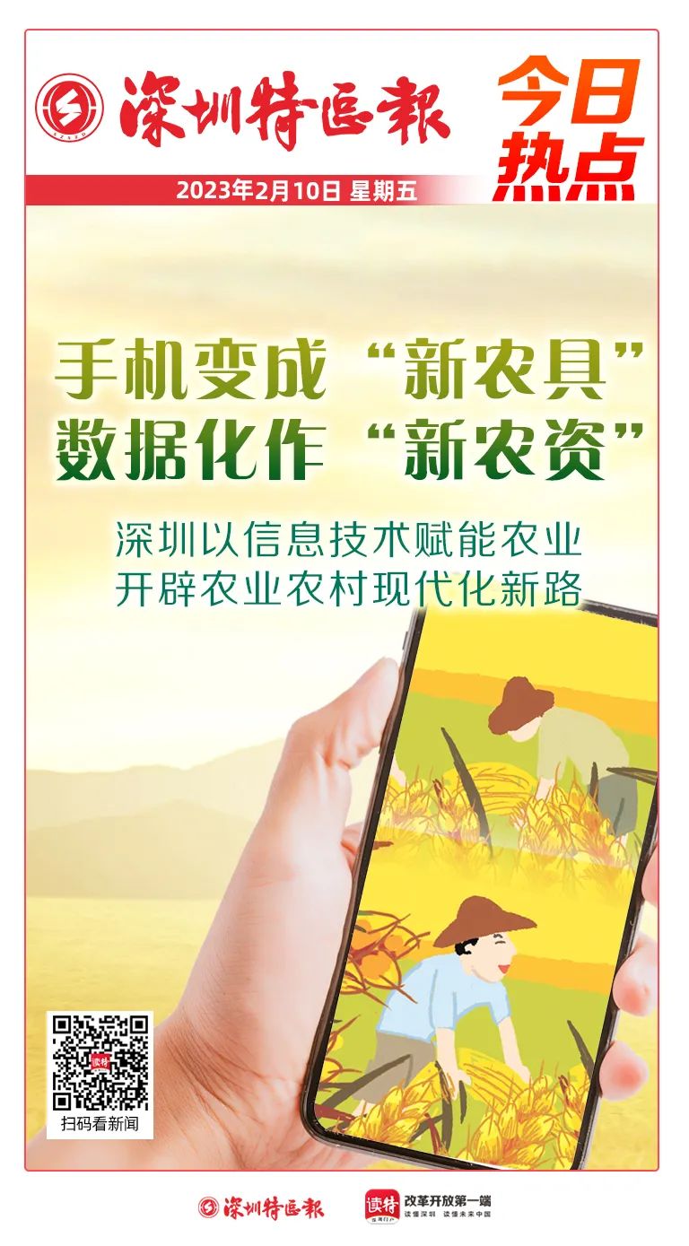 手機變成「新農(nóng)具」,數(shù)據(jù)成了「新農(nóng)資」,隨時傳播「新農(nóng)技」。深圳企業(yè)充分推廣應(yīng)用數(shù)碼技術(shù),賦能農(nóng)業(yè)服務(wù)全產(chǎn)業(yè)鏈,為全國逾1000萬農(nóng)戶提供多層次、多類型的農(nóng)業(yè)社會化服務(wù),在農(nóng)業(yè)強國建設(shè)中展現(xiàn)深圳作為,加快轉(zhuǎn)變農(nóng)業(yè)發(fā)展方式,開闢出鄉(xiāng)村振興和農(nóng)業(yè)農(nóng)村現(xiàn)代化的新路。
