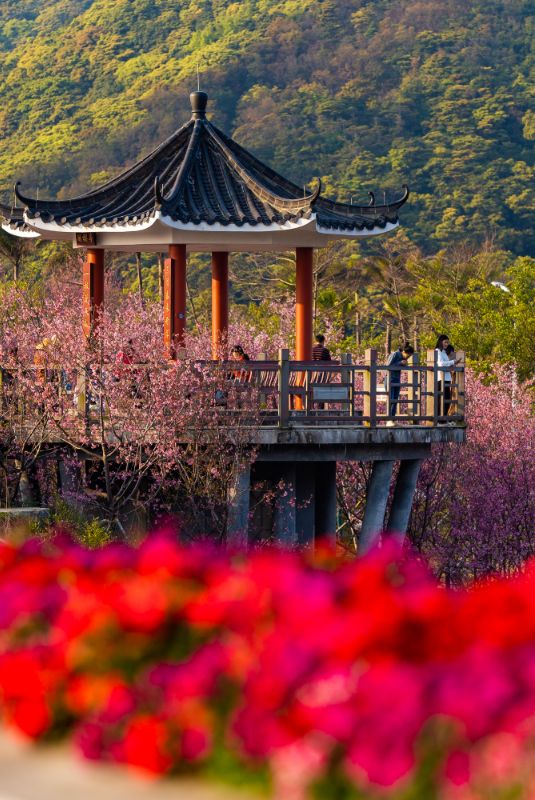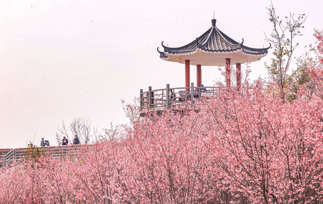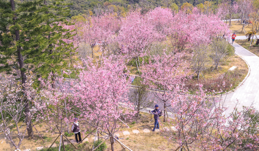 眼下最火的賞櫻寶藏地非鹽田區(qū)小三洲塘櫻花林莫屬,該片區(qū)櫻花正值盛花期,是賞櫻的最佳時(shí)間。登上高處的醉櫻亭一看,櫻花不是零星幾株,而是滿山谷,一朵朵一團(tuán)團(tuán)一簇簇,粉嫩的櫻花在春風(fēng)中翩翩起舞。