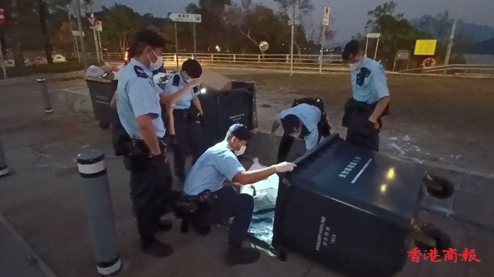 約50名西九龍總區(qū)重案組探員圍封涉事單位進行搜查,稍後召鑑證科探員到場搜證。至今晚6時起,警方在龍尾村近汀角路對開拉起封鎖線,並派出大約40多名機動部隊警員在場進行地氈式搜索,先後在路邊草叢、垃圾箱翻箱倒籠搜索,以搜索與案有關(guān)的證物。