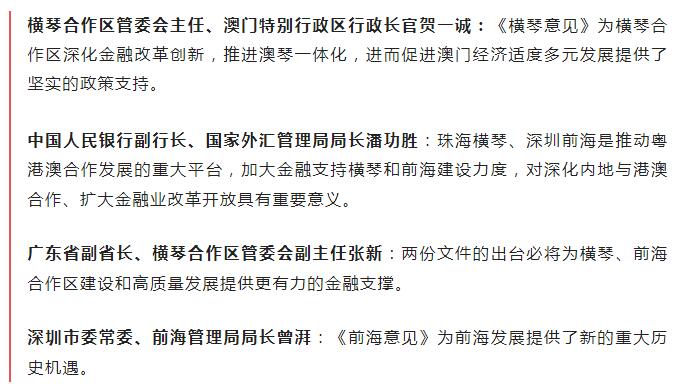 2月24日,廣東省政府以視頻連線中國(guó)人民銀行、前海合作區(qū)的方式,在橫琴合作區(qū)舉行《關(guān)於金融支持橫琴粵澳深度合作區(qū)建設(shè)的意見(jiàn)》和《關(guān)於金融支持前海深港現(xiàn)代服務(wù)業(yè)合作區(qū)全面深化改革開(kāi)放的意見(jiàn)》政策文件發(fā)布會(huì)。