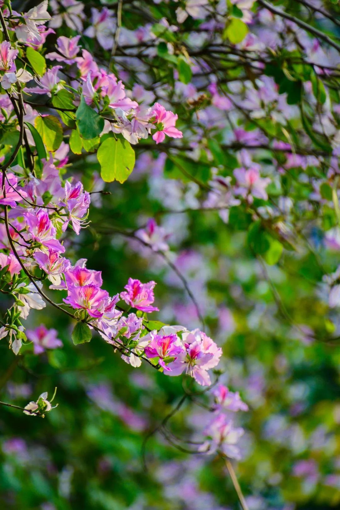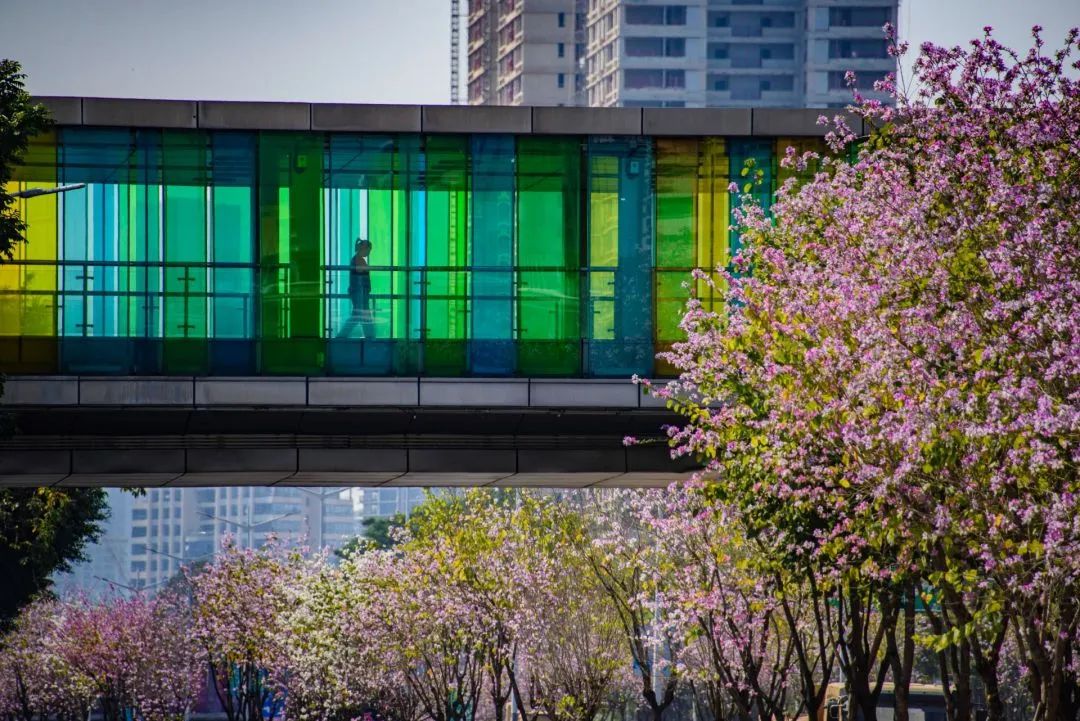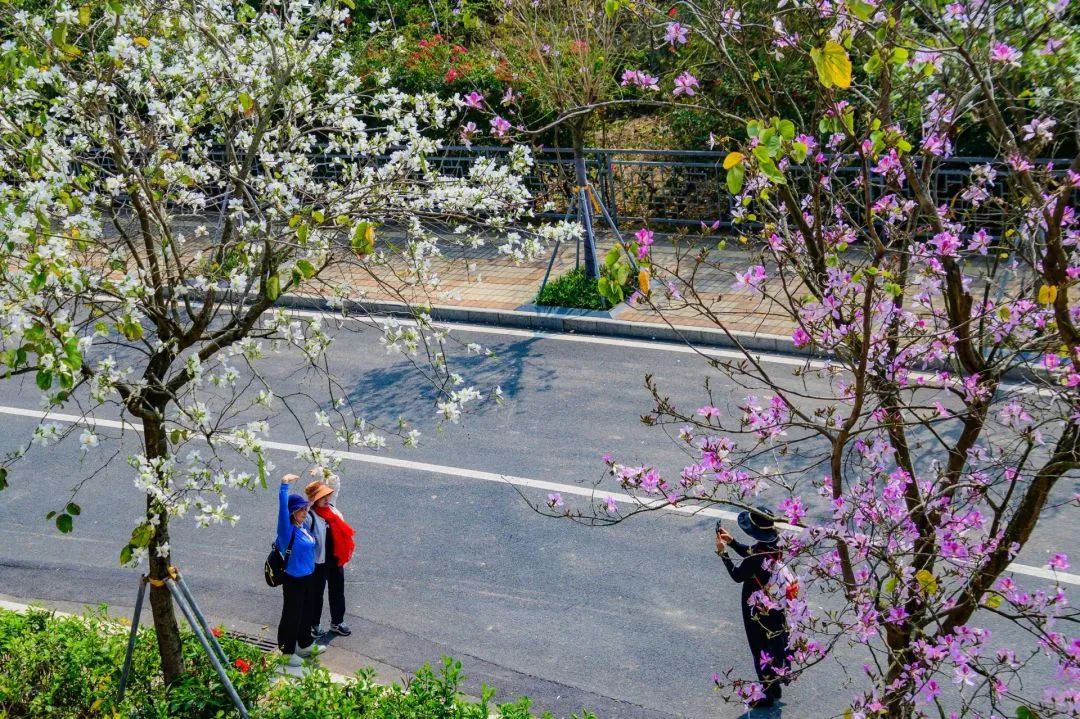 春風和煦,連日來,深圳街頭、公園、綠道等處的宮粉紫荊齊刷刷地開花了,滿城滿眼都是粉粉嫩嫩的顏色,日常的道路因為宮粉紫荊的綻放變成一條條“花路”,全城充滿浪漫無邊的春日氣息。