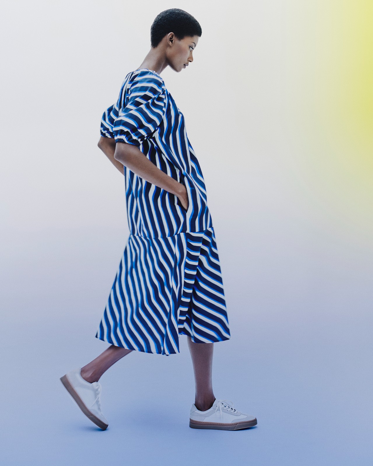 今季著重服裝的面料,以精緻而奢華的裝飾將設(shè)計昇華,包括襯衫上的交叉紐帶、夏日連身裙上的荷葉邊、皺褶、細(xì)褶和百褶裝飾、鏤空刺繡和縫線裝飾等元素。主要面料包括柔軟的絨面革和絲綢替代品,及對環(huán)境造成較低影響、循環(huán)再生和有機(jī)物料製成,並備有中長半身裙和拼接設(shè)計吊帶裙等奢華單品。針織衫採用適合當(dāng)季的設(shè)計,清新的檸檬綠色及以色調(diào)淡雅、純淨(jìng)的棉紗製成、輕盈的紋理針織。