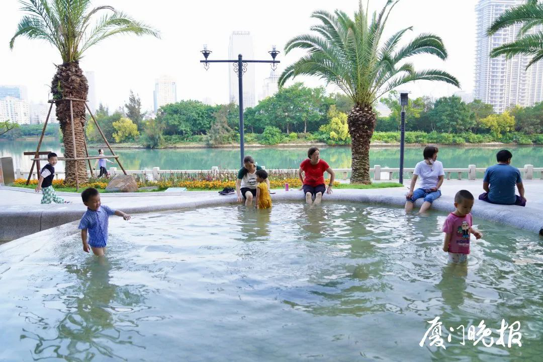 在筼簹湖畔咖啡一條街附近以「38℃」命名的溫泉口袋公園日前試開放,吸引了不少市民遊客前往一探究竟。