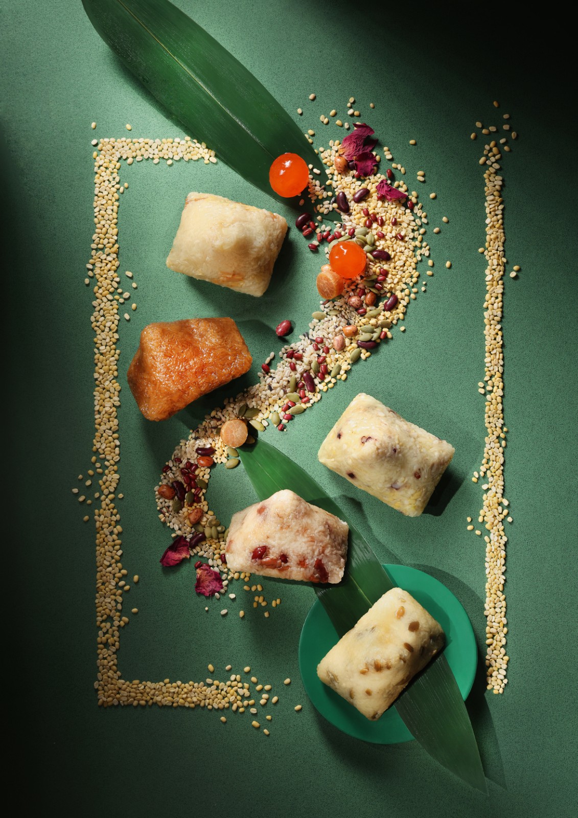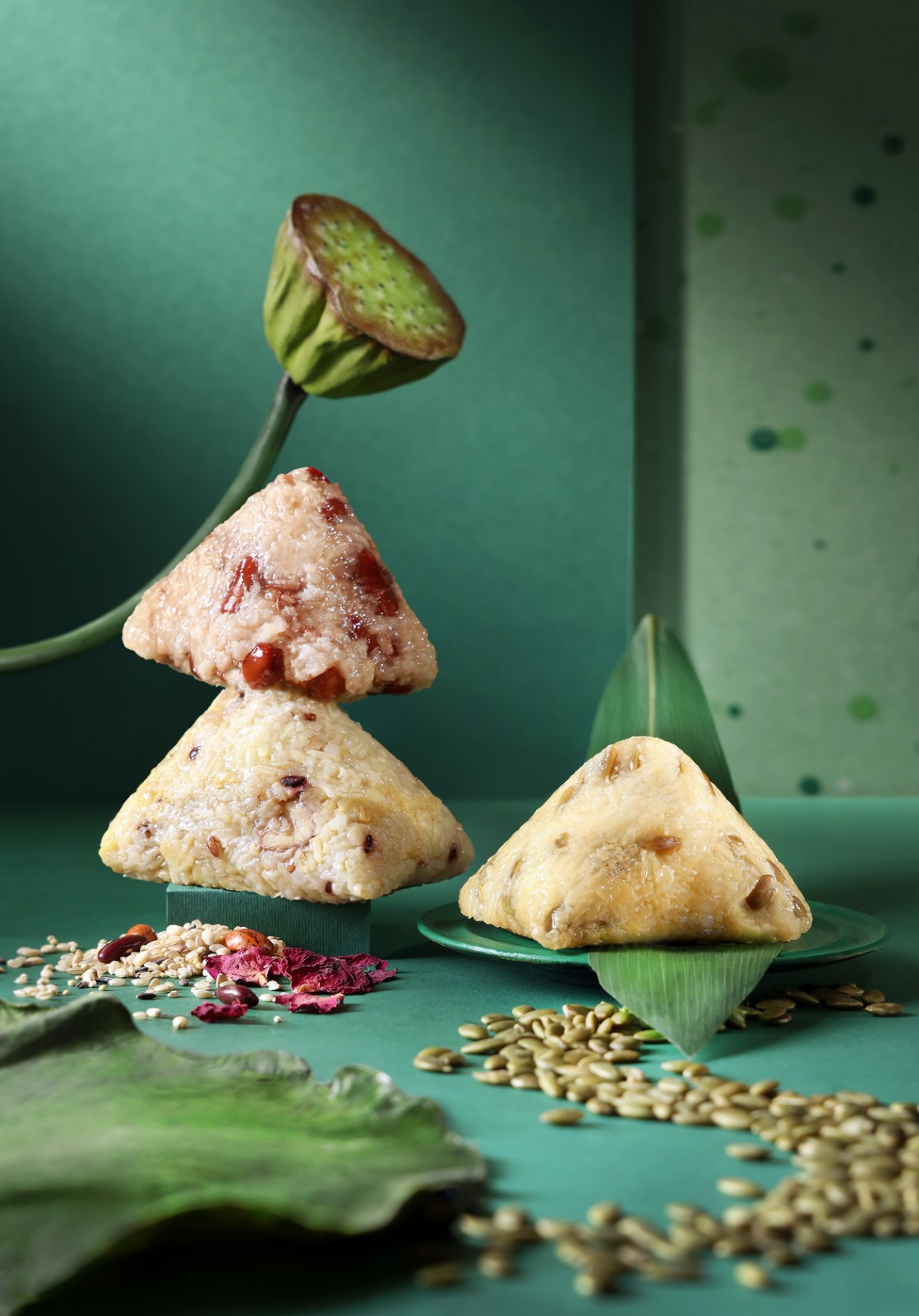 吃糭要吃得健康,推介酒店的全新端午糭子組合「三色有機養(yǎng)生糭」,組合內(nèi)有3款素食糭子,包括羊肚菌金栗新豬肉糭,選用Omnipork新豬肉代替?zhèn)鹘y(tǒng)豬肉,配上濃郁香味的羊肚菌及香甜的金栗,有營養(yǎng)之餘兼?zhèn)淇诟?;玫瑰?yún)豆冬茸糭含有豐富的五色雲(yún)豆,分別是紅腰豆、大紅花豆、大白雲(yún)豆、黑豆及白奶花豆,加上冬瓜茸及玫瑰醬製成,帶有陣陣玫瑰的香甜,女士必定喜愛;陳皮南瓜籽豆沙糭是酒店大廚創(chuàng)作的全新素糭,含豐富礦物質(zhì)及維他命的南瓜籽可促進新陳代謝,加入回甘的陳皮及香滑清甜的豆沙,入口絲絲甜蜜,甜糭愛好者必嘗。