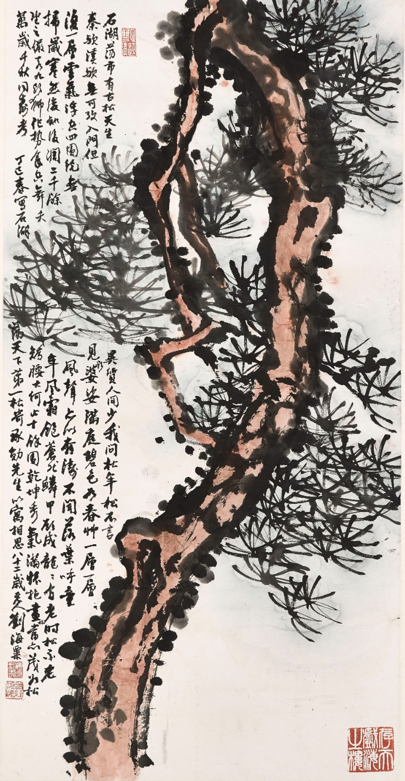 劉海粟作品《天下第一松》1977年,132.8×68cm。