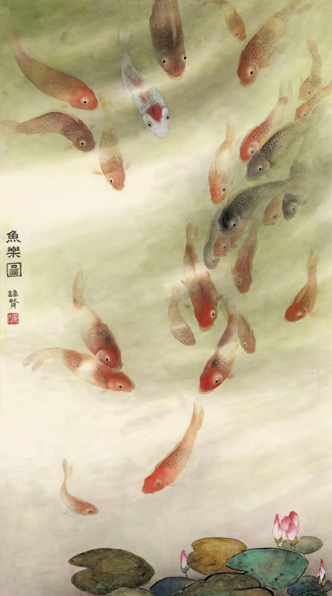 黃詠賢作品《錦鯉樂瑤池(魚樂圖)》局部。