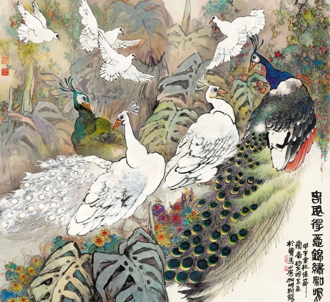 黎明作品《春風(fēng)得意錦繡和鳴二連屏》局部。