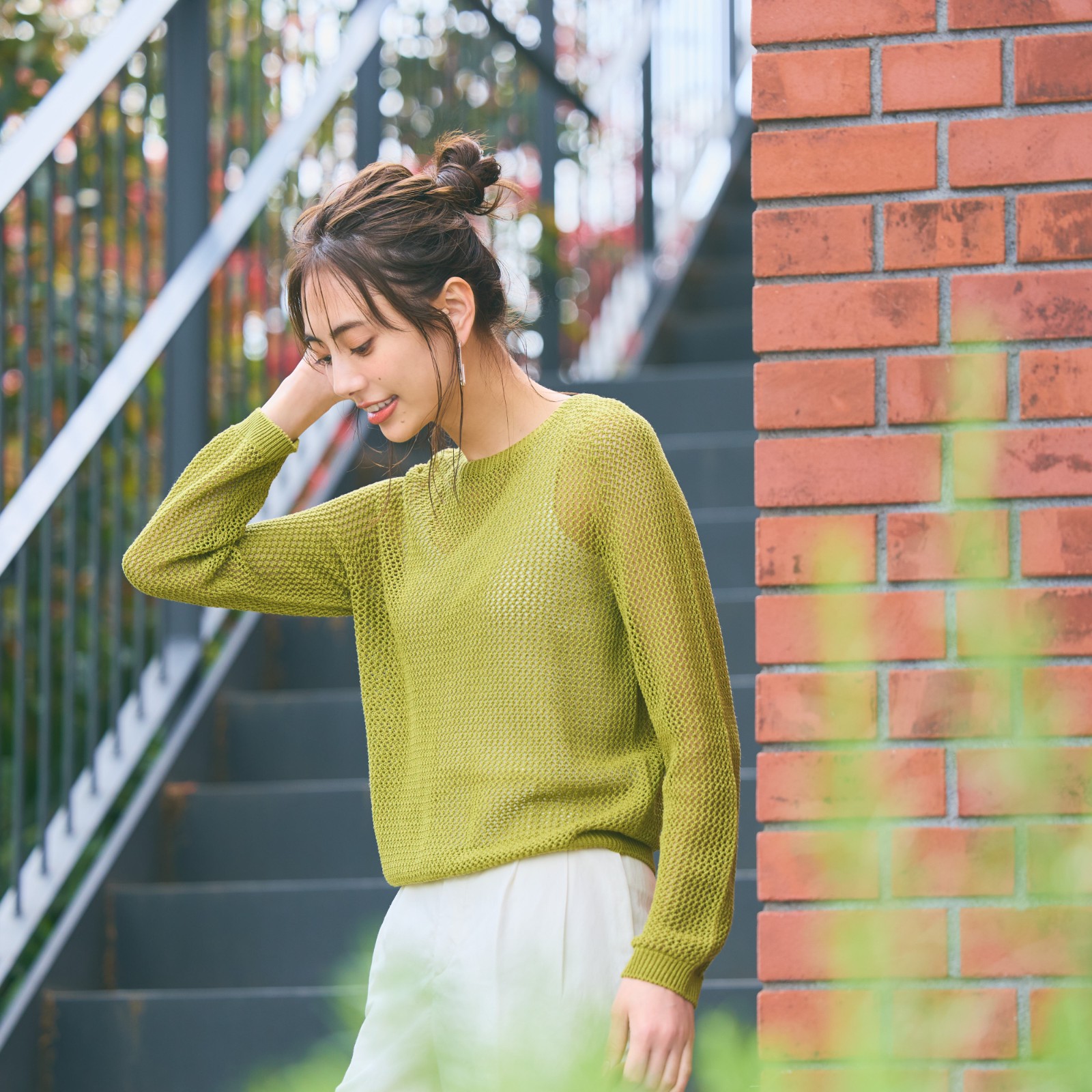 今個(gè)夏日,透明感服飾當(dāng)?shù)溃@股熱潮也蔓延至秋天。採用特殊的立體織法的3D織法網(wǎng)紋圓領(lǐng)針織衫,自然貼合體形,網(wǎng)紋縷空質(zhì)地能優(yōu)美地透出肌膚。秋季必備的透膚樽領(lǐng)針織T恤及透膚針織圓領(lǐng)T恤,採用柔滑舒適的羅紋物料,可當(dāng)上衣單穿,下身搭配打褶長褲展現(xiàn)幹練造型,或搭配寬版牛仔褲、工裝褲,打造俐落造型。同時(shí)可作內(nèi)搭,外襯吊帶連身裙,穿出透膚層次感,增加少女氣息。