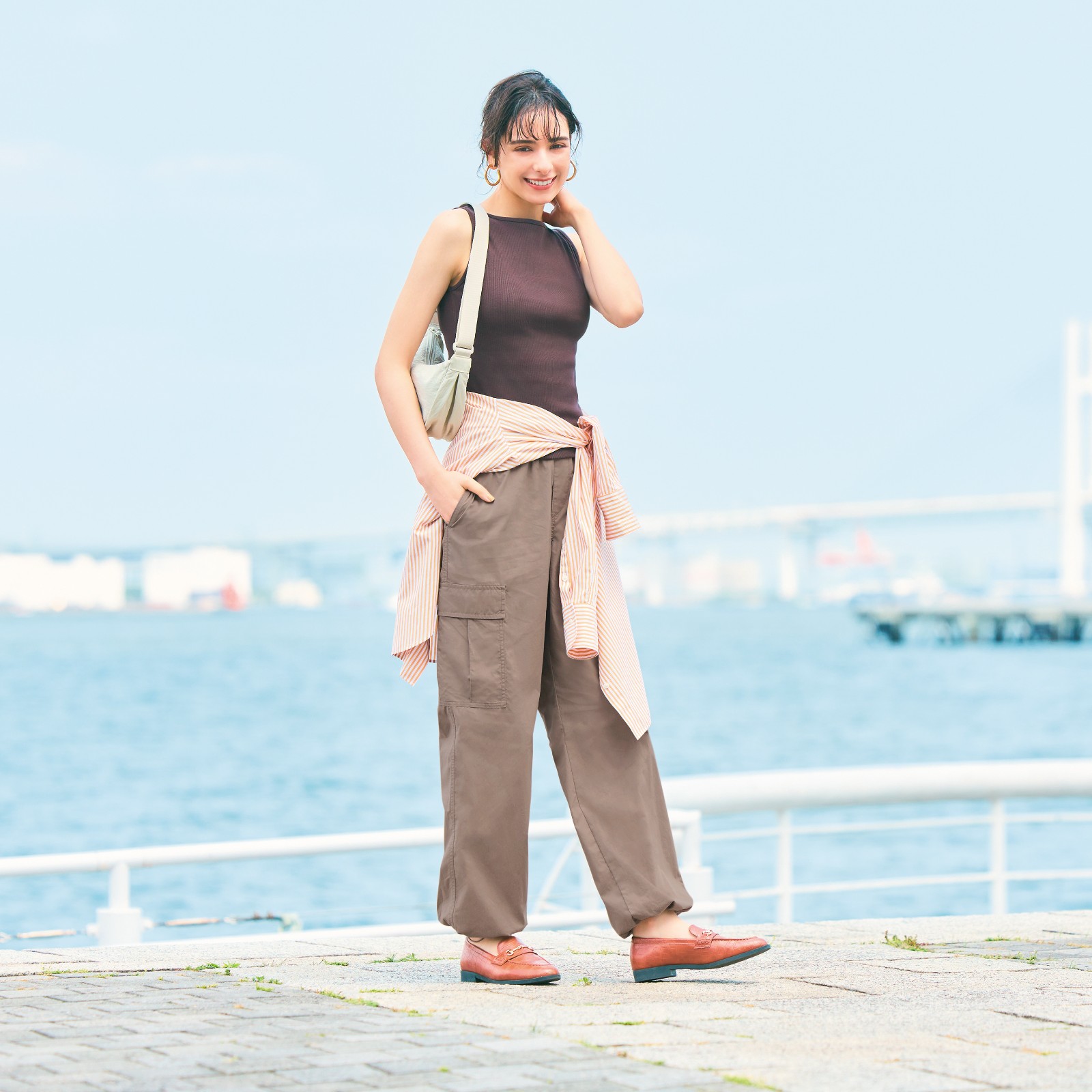 休閒工裝褲,HK$299。襯上平底涼鞋帶出復(fù)古休閒感,或尖頭高跟鞋穿出隨性幹練的氣場。