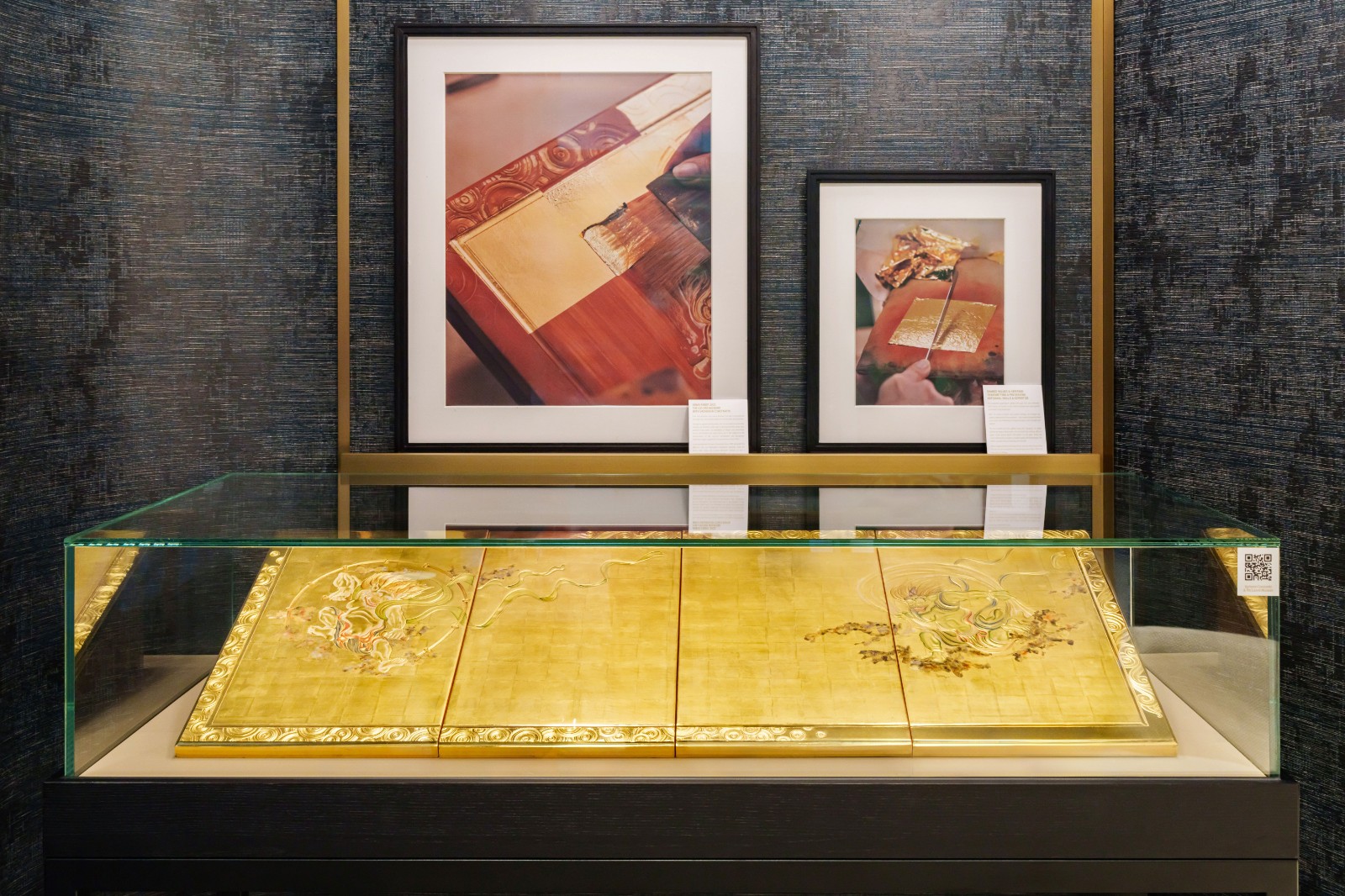 羅浮宮與該品牌的多位工匠大師在展覽會(huì)現(xiàn)場(chǎng)共同製作的金箔鍍金四聯(lián)畫。