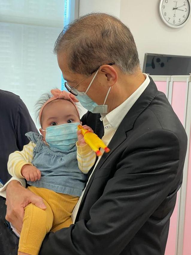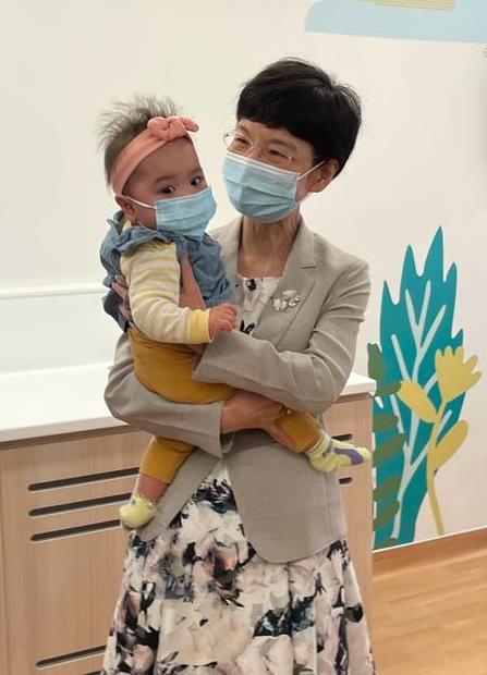 醫(yī)務(wù)衞生局昨日(28日)在社交平臺(tái)專(zhuān)頁(yè)發(fā)文,指「活潑精靈的芷希依然拿著她的小火雞公仔,一點(diǎn)也不怕陌生,瞪大眼睛四圍張望」。相片顯示,芷希被盧寵茂及郭燕紅抱在懷內(nèi)時(shí)也沒(méi)有哭鬧。郭燕紅向芷希送上小禮物,除了一些玩具,還包括象徵生命接力的「施予受」(Love & Hope)徽章,祝願(yuàn)她健康成長(zhǎng)。