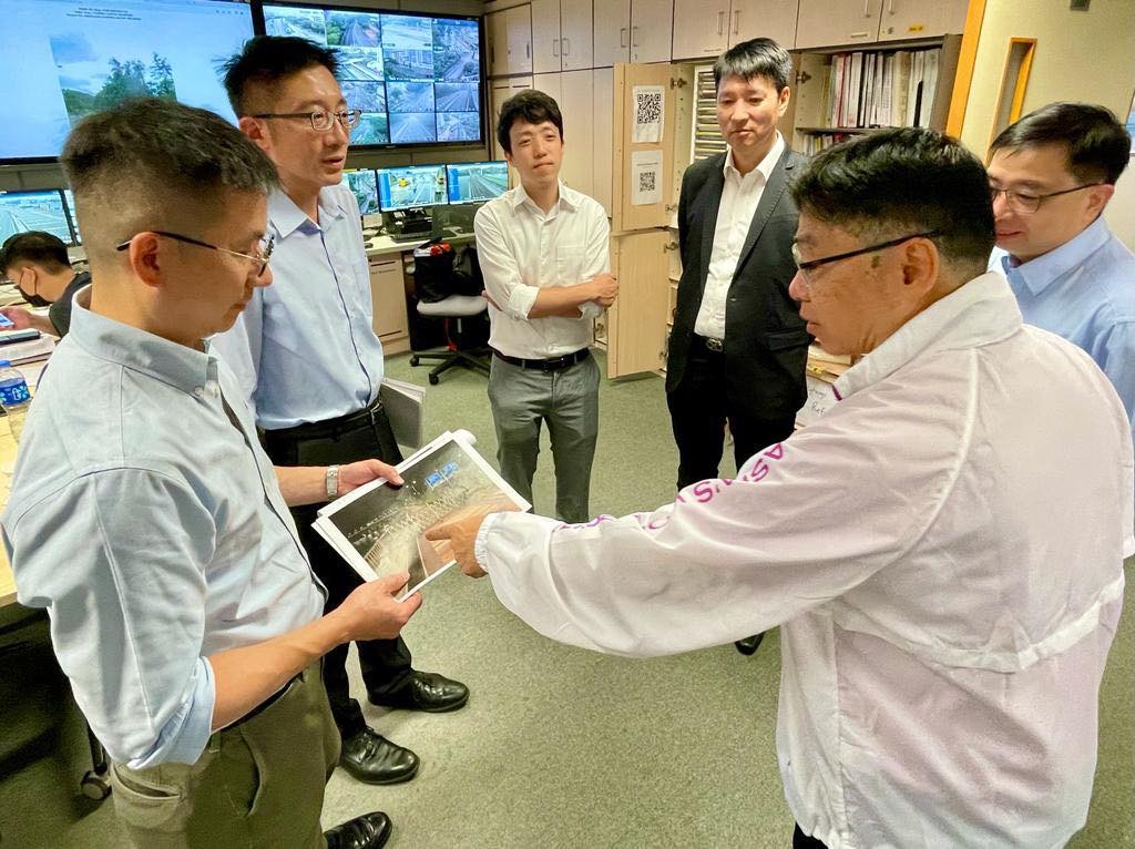 運輸及物流局局長林世雄、副局長廖振新和政治助理物流局政治助理陳閱川今早(9月1日)分別到訪路政署緊急控制中心與運輸署緊急事故交通協(xié)調(diào)中心,慰問當「風雨更」同事,並感謝他們無懼風雨,為市民服務。