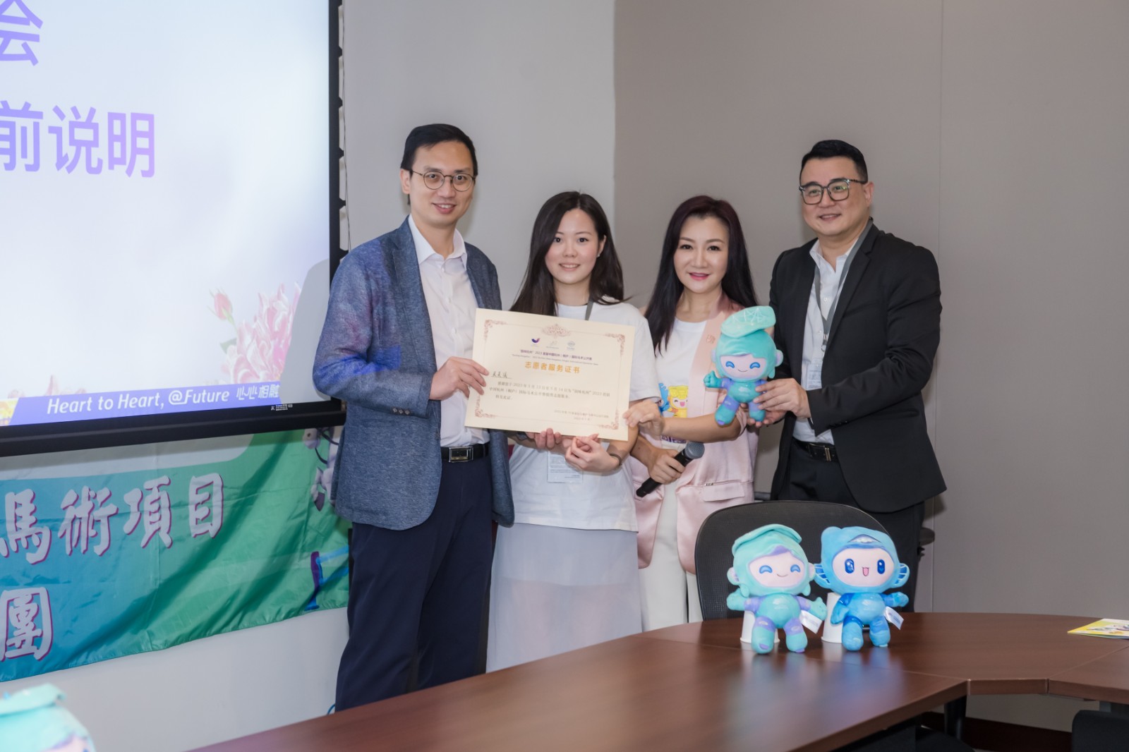 活動上,主辦方向5月曾前往浙江桐廬為國際馬術(shù)公開賽提供志願服務(wù)之志願者頒發(fā)証書,以表揚他們在早前進行之崗位實習(xí)培訓(xùn)上盡忠職守,發(fā)揮青年特色,用實際行動詮釋當(dāng)代青年的責(zé)任與擔(dān)當(dāng)。