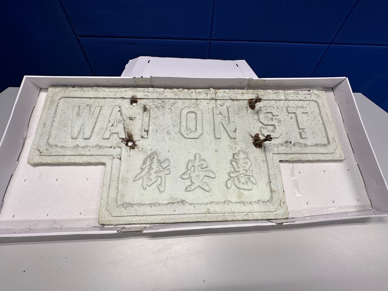 警方昨日(4日)根據(jù)線報(bào)和情報(bào)分析,在深水埗福華街一幢唐樓大廈的天臺(tái),尋回一塊被盜的路牌,有理由相信因警方早前的拘捕行動(dòng)後,賊人將路牌棄置於上址。韋榮傑說(shuō),路政署報(bào)告被盜去的路牌共有10個(gè),全部在西九龍總區(qū),主要安裝在旺角、深水埗九龍城區(qū),已逾60年。