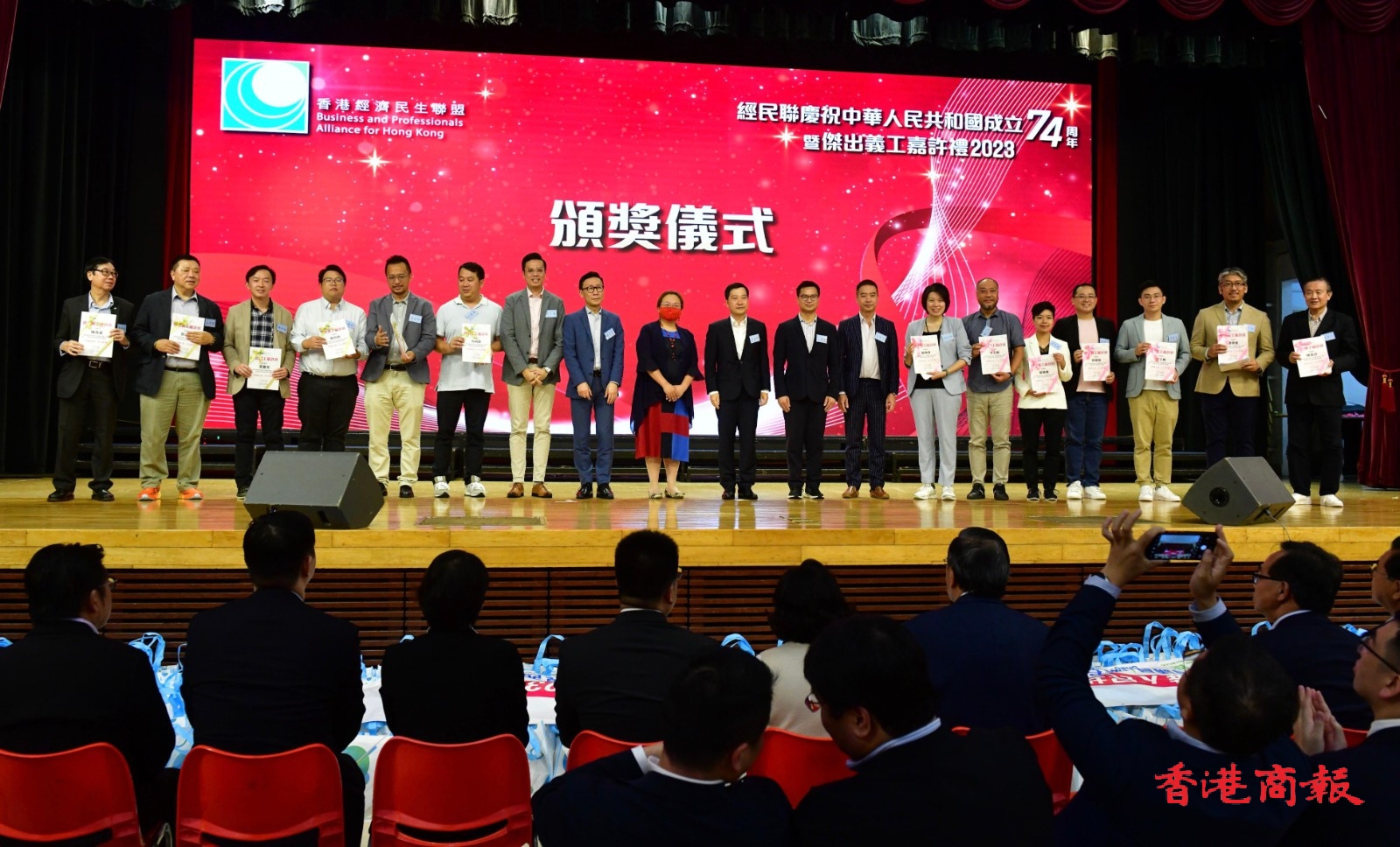 經(jīng)民聯(lián)今日(6日)在尖沙咀街坊福利會(huì)社區(qū)會(huì)堂舉行「經(jīng)民聯(lián)慶祝中華人民共和國(guó)成立74周年暨傑出義工嘉許禮2023」,聯(lián)盟核心成員與地區(qū)成員、來(lái)自全港各區(qū)的義工、街坊及友好共500多人齊賀國(guó)慶,並向在3年抗疫期間忘我堅(jiān)持服務(wù)社區(qū),全力配合特區(qū)政府提高地區(qū)治理水準(zhǔn)的傑出義工作出嘉許。政務(wù)司司長(zhǎng)陳國(guó)基、民政及青年事務(wù)局局長(zhǎng)麥美娟、中聯(lián)辦官員、多區(qū)民政事務(wù)專(zhuān)員、社團(tuán)友好、地區(qū)領(lǐng)袖共500多人參加活動(dòng)。