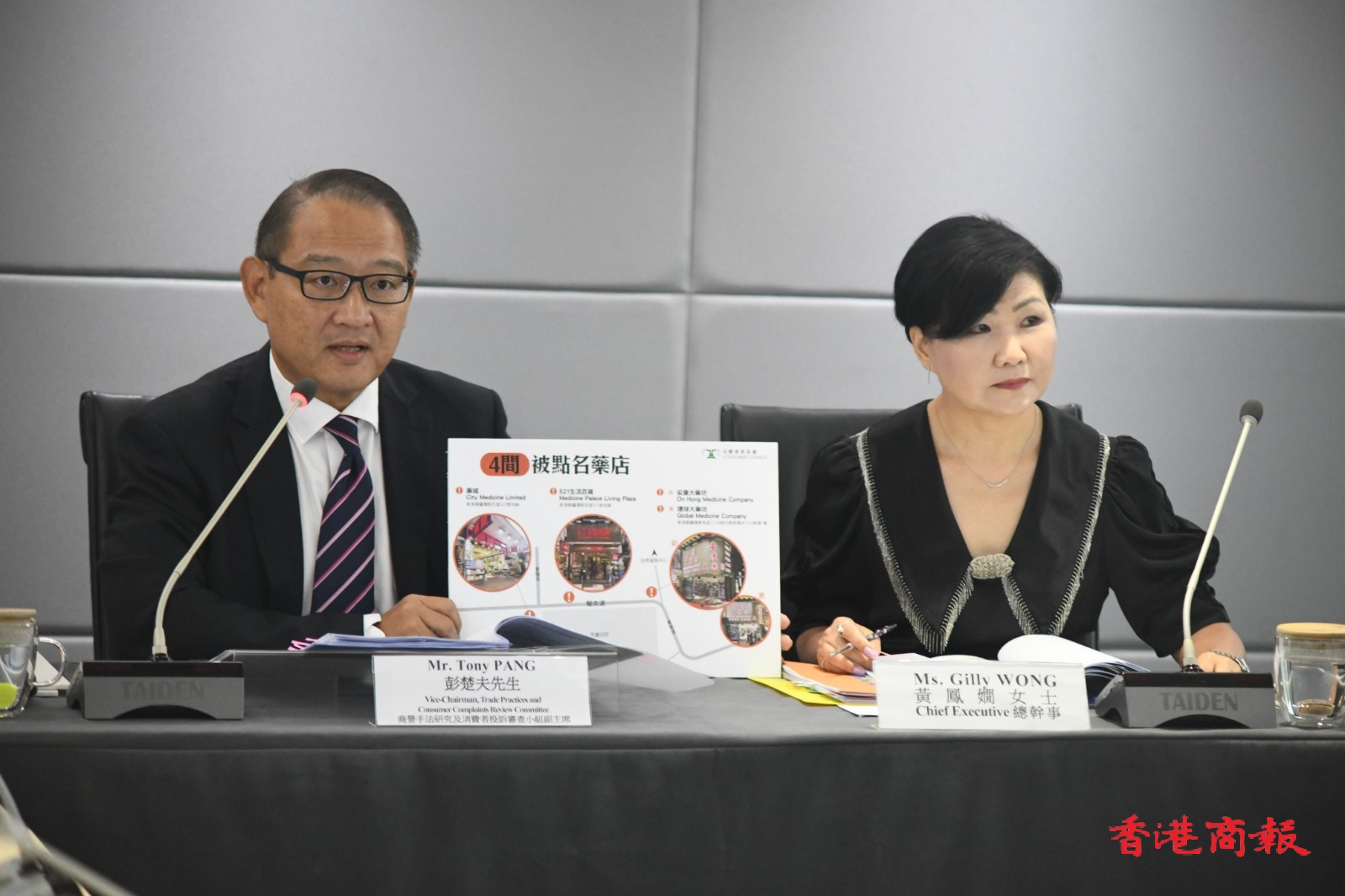 消委會7日點名譴責(zé)銅鑼灣4間藥店涉及俗稱「斤變両」「両變錢」的不良營商手法。(記者 蔡啟文攝)
