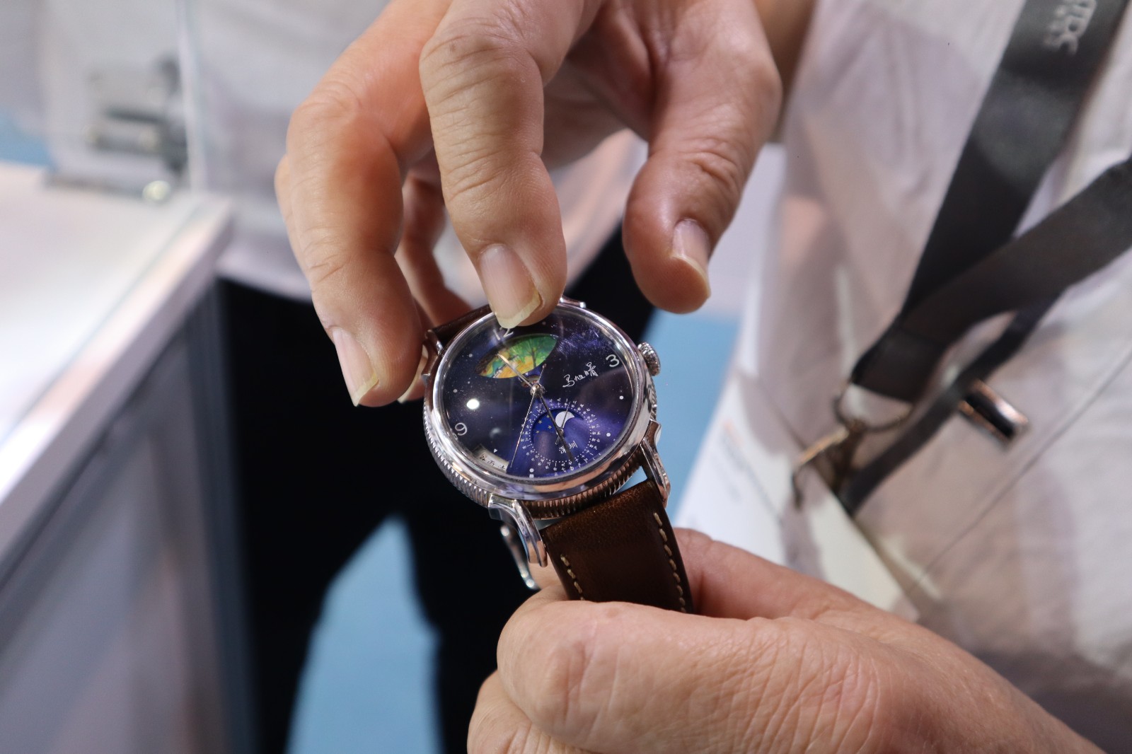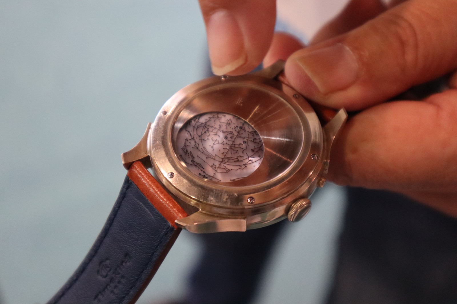新增的「國(guó)潮」主題展示多位重量級(jí)內(nèi)地製表師所創(chuàng)作、結(jié)合中華文化元素與精湛工藝的腕表,彰顯獨(dú)特魅力和匠心技藝。內(nèi)地鐘表大師馬旭曙,帶著他的代表作「北京星空」與記者分享。他詳細(xì)介紹了腕表背面呈現(xiàn)的北京緯度上方88個(gè)星座連成的星空:「儘管星星在我們看起來(lái)似乎是固定的,實(shí)際上卻隨時(shí)間規(guī)律而運(yùn)行。表盤(pán)採(cǎi)用阿基米德螺旋刻度,一個(gè)圓周代表四個(gè)小時(shí),指針具有伸縮結(jié)構(gòu),能同時(shí)指示小時(shí)與分鐘,繁星與時(shí)間的韻律交織出璀璨的北京星空?!?/p>