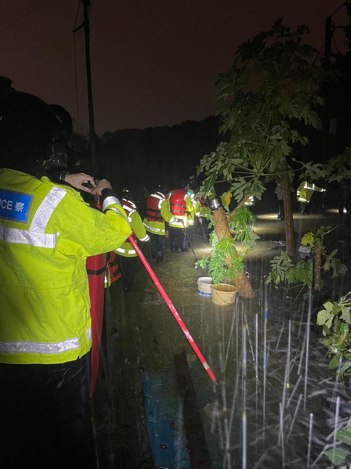 8日早上,警方人員接獲求助報(bào)告後趕至九華徑村將被困市民救到安全地點(diǎn)。(香港警隊(duì)社交媒體圖片)