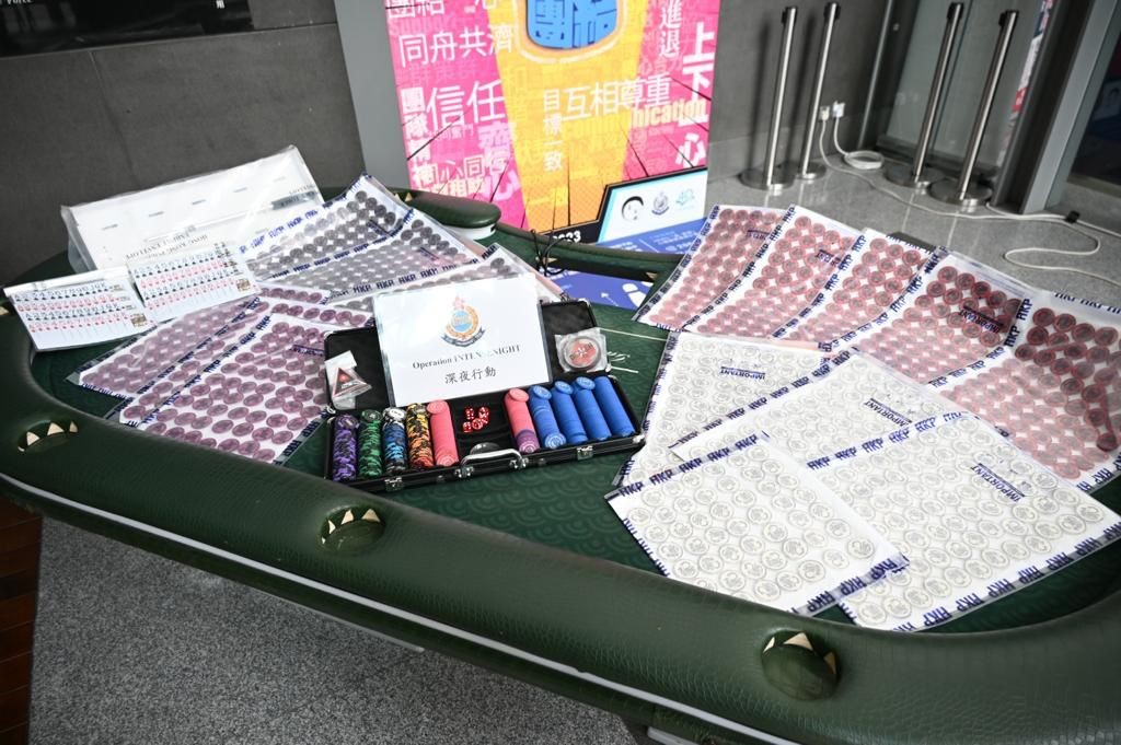 新界南總區(qū)刑事部總督察劉煜華今日(11日)表示,為打擊非法賭博場所及相關(guān)收入,新界南總區(qū)反三合會行動組在本年初派探員喬裝假扮賭客,收集非法賭博場所相關(guān)的情報,包括透過不同渠道找尋和確定賭博場所的地點,和多次喬裝賭客到目標場所收集情報,掌握營運模式和時間,以及負責人的身份,其後成功所定2個在工業(yè)大廈的德州撲克非法賭檔。