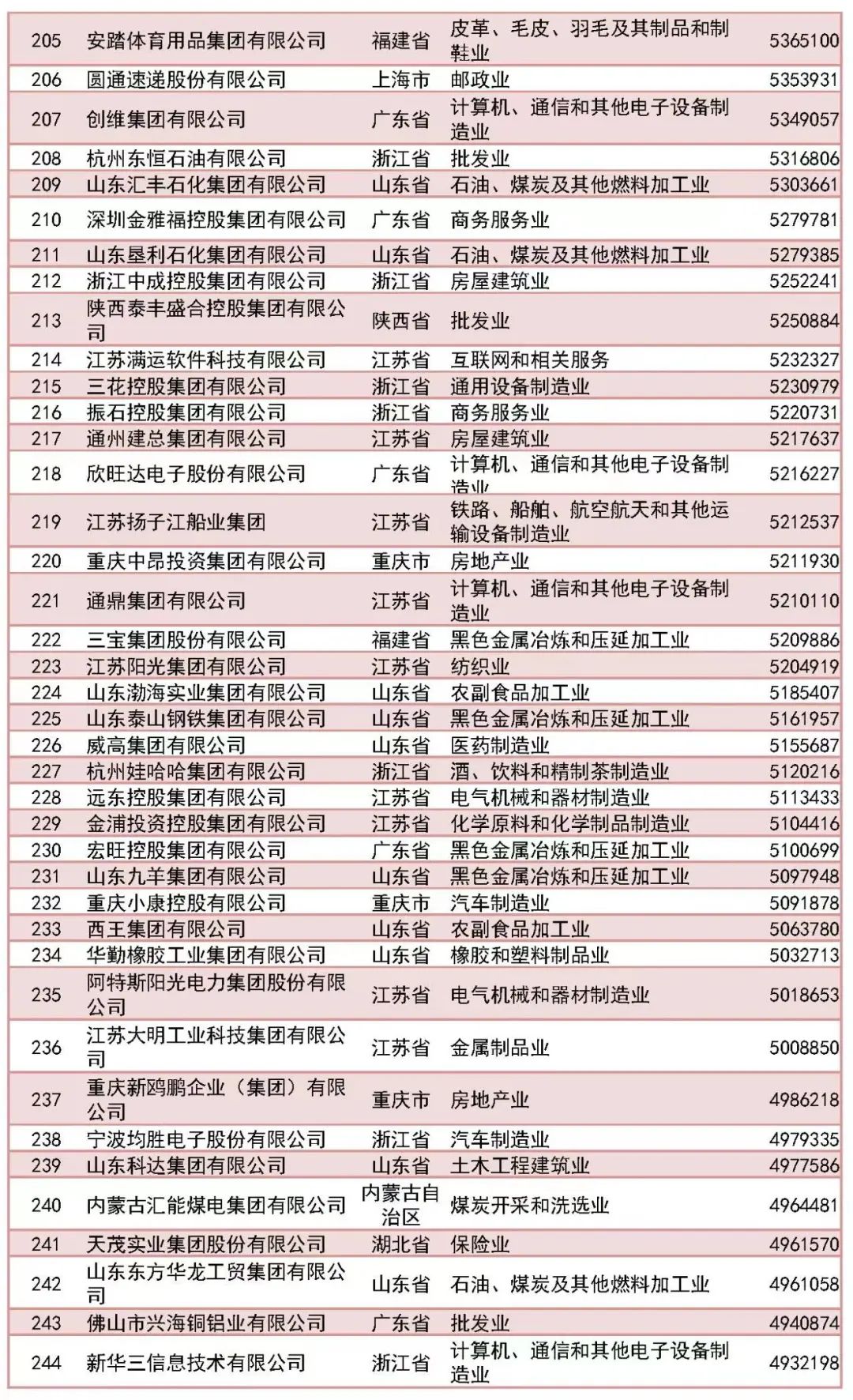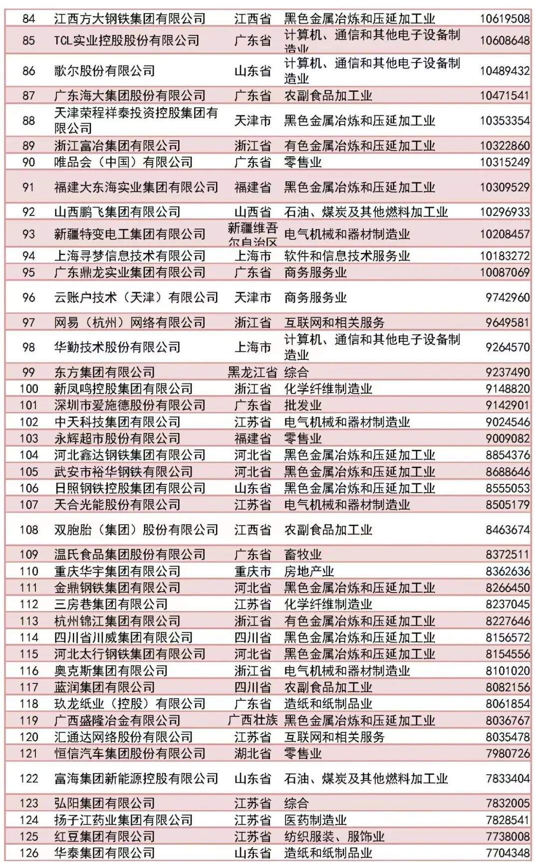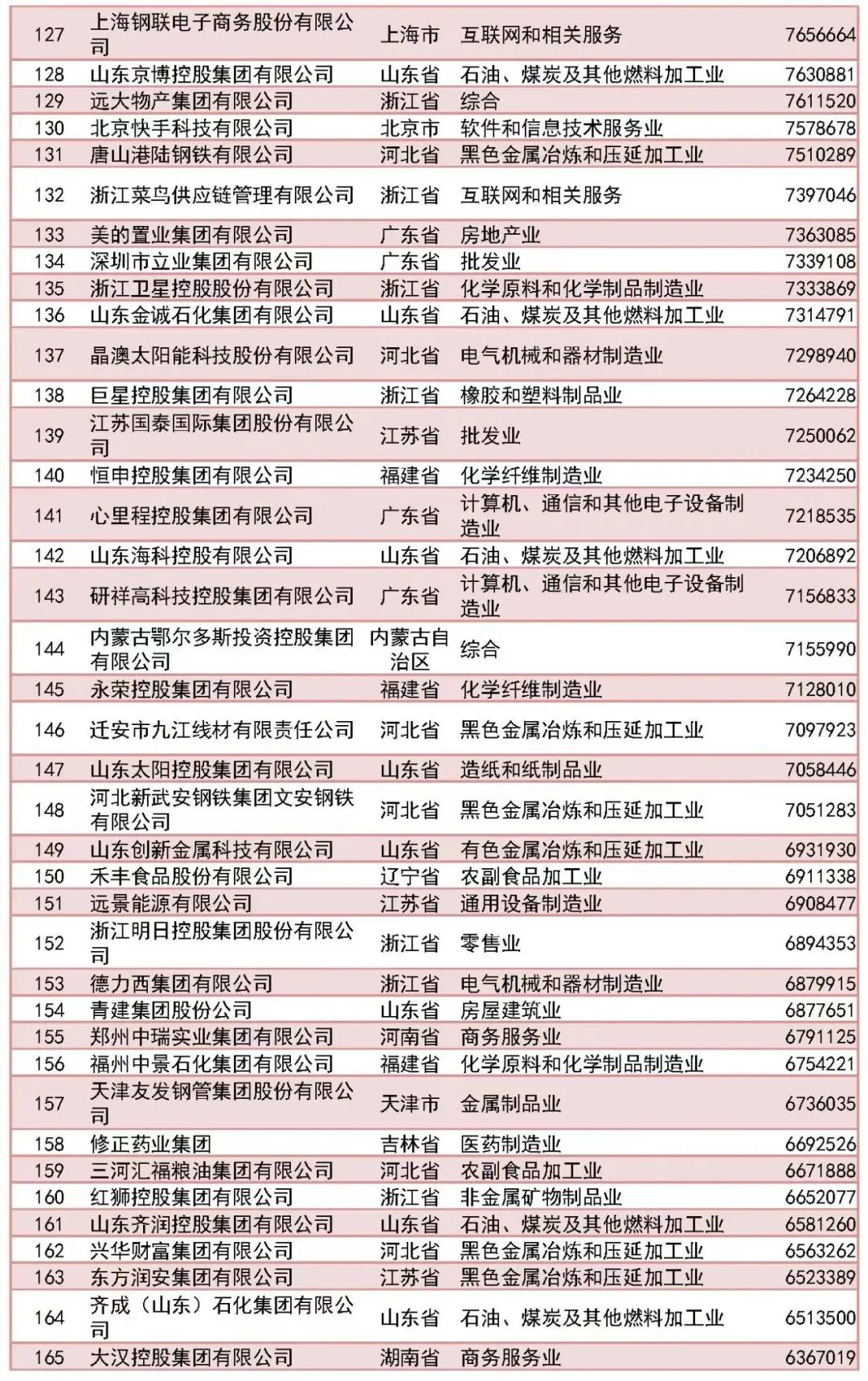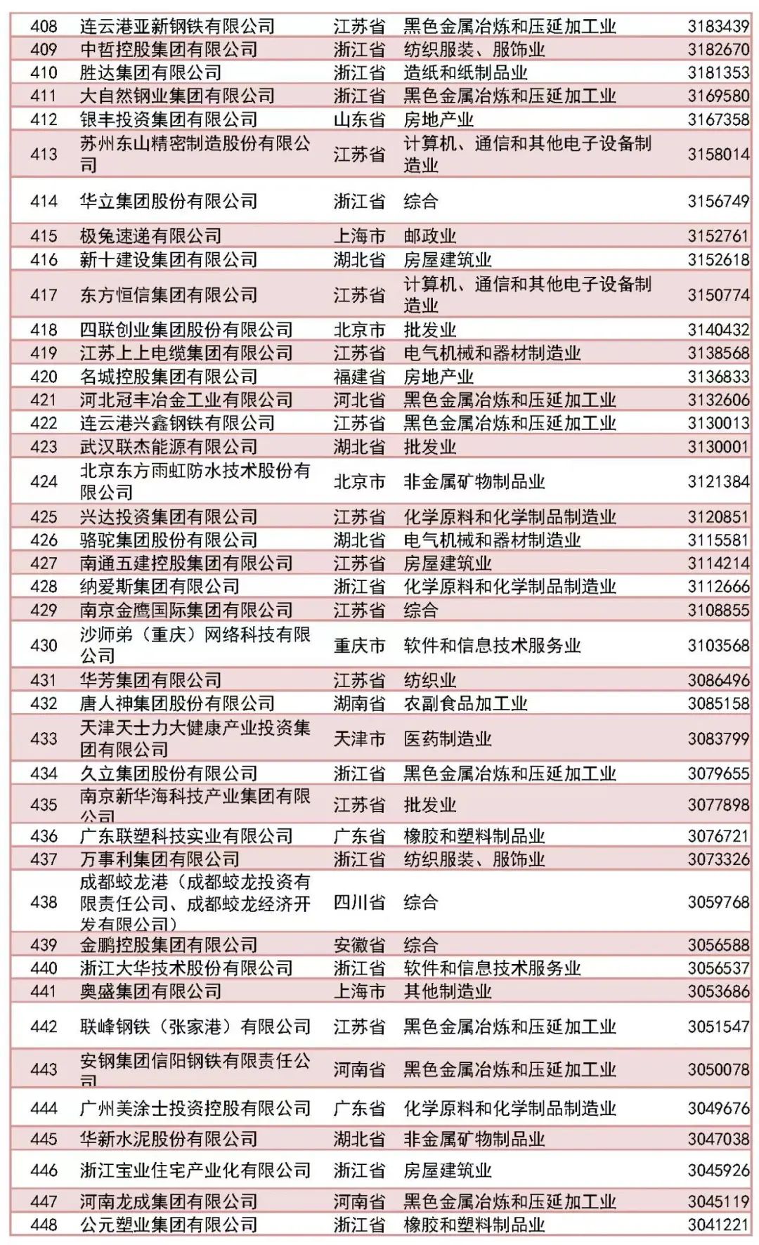 「2023中國民營企業(yè)500強」榜單前十名分別為:京東集團、阿里巴巴(中國)有限公司、恒力集團有限公司、正威國際集團有限公司、浙江榮盛控股集團有限公司、騰訊控股有限公司、山東魏橋創(chuàng)業(yè)集團有限公司、萬科企業(yè)股份有限公司、聯(lián)想控股股份有限公司、比亞迪股份有限公司。