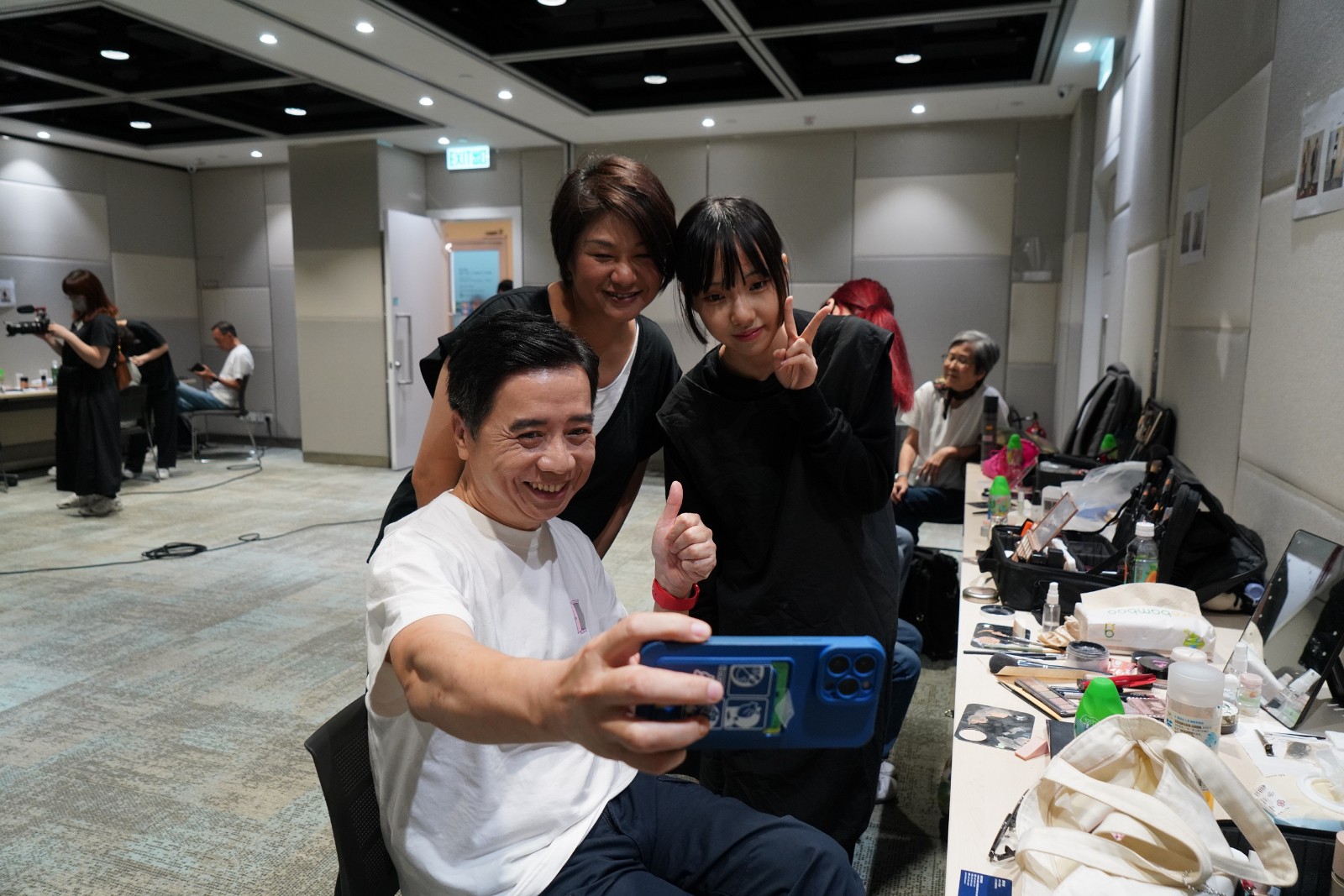 青年學(xué)院職專(zhuān)文憑(專(zhuān)業(yè)美容)學(xué)生負(fù)責(zé)為銀髮族模特兒提供專(zhuān)業(yè)舞臺(tái)化妝,更在後臺(tái)和他們打成一片。