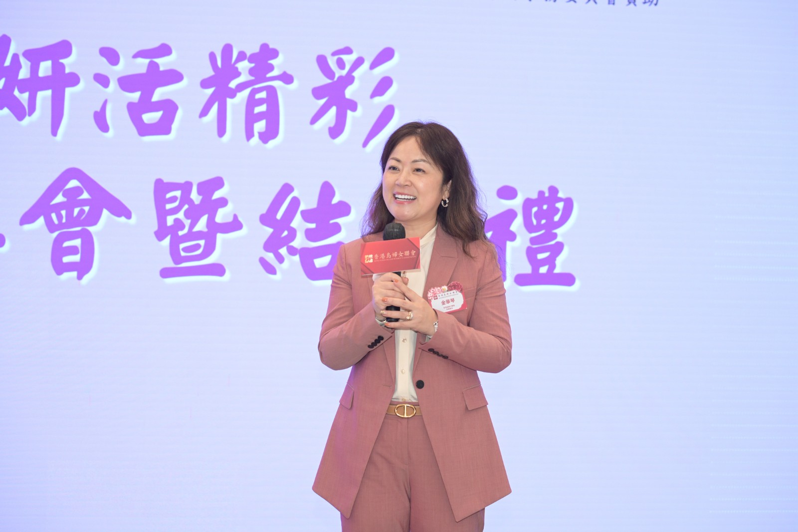 婦女事務(wù)委員會協(xié)作及推廣工作小組聯(lián)合召集人伍穎梅向大家介紹「婦女自強基金」概況。她指,基金將協(xié)助婦女在就業(yè)市場轉(zhuǎn)型、促進婦女的身心健康、協(xié)助婦女應(yīng)對在家庭及社會中的不同角色、以及協(xié)助婦女使用新資訊及通訊科技等。她讃賞香港島婦女聯(lián)會務(wù)致力於推動基層婦女事業(yè)全面發(fā)展,並祝願各位姊妹都能夠找到屬於自己的出路,發(fā)展事業(yè)。而婦委會亦會繼續(xù)和社會各界合作,一同提供有利環(huán)境,「妍亮」婦女的人生。