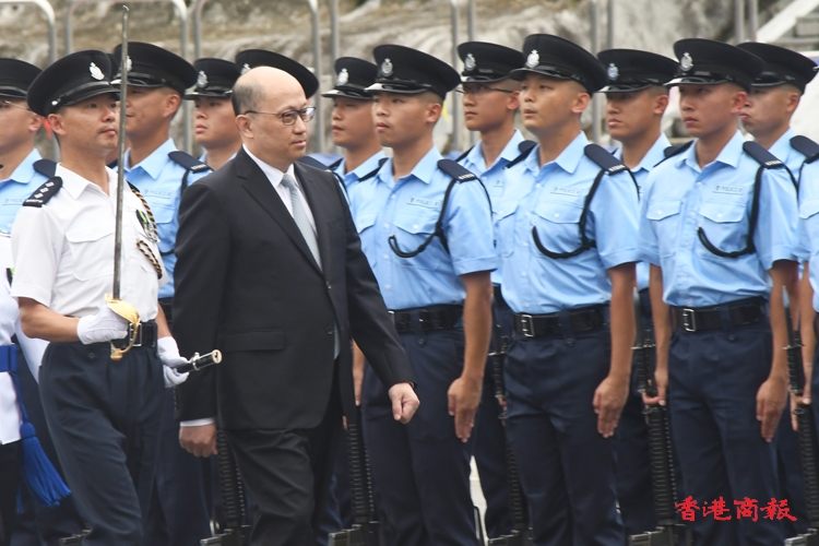 據(jù)悉,此次結(jié)業(yè)會操是第一次由中聯(lián)辦主任擔任檢閱官。鄭雁雄檢閱畢業(yè)的28個見習督察,以及127個警員,並向成績優(yōu)異的警員頒授施禮榮盾及榮譽警棍等。