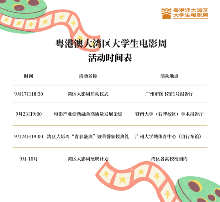 粵港澳大灣區(qū)大學(xué)生電影周活動(dòng)時(shí)間表(主辦方供圖)