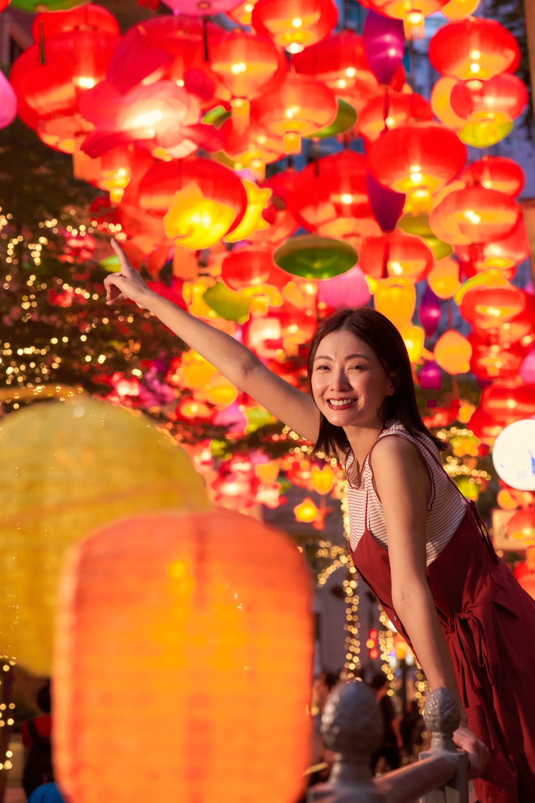 燈籠海打卡姿勢(shì)二,自備燈籠道具,與各式燈籠一同拍照,活力滿分。