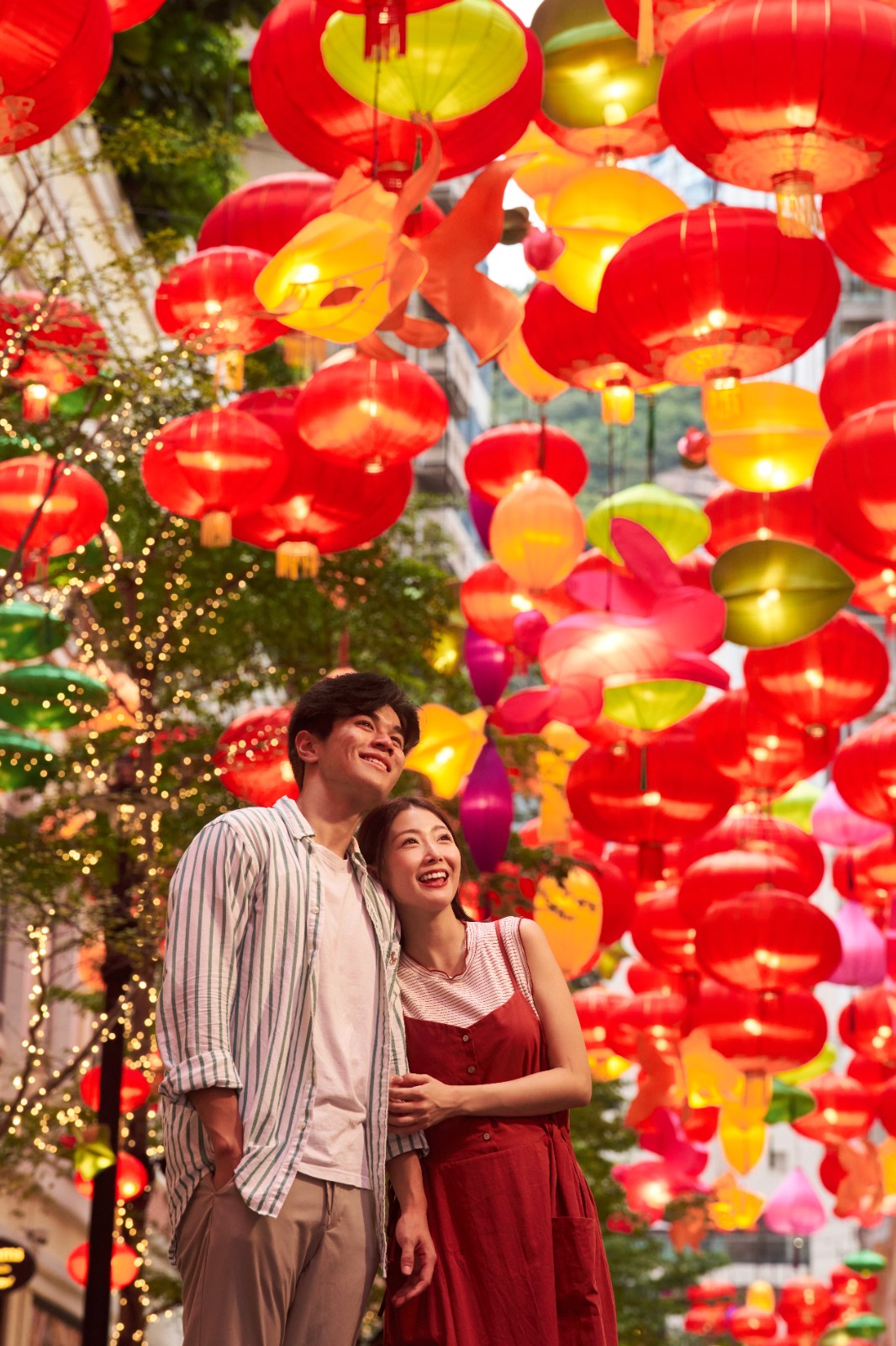約200米長(zhǎng)的林蔭大道掛上逾800個(gè)五彩繽紛的中式燈籠,今年首度加入不同造型的特色燈籠,如玉兔、金魚、楊桃等,錯(cuò)落有致的燈海層次設(shè)計(jì),配襯兩旁歐式建築,讓大家與摰愛在漫天璀璨彩燈下,欣賞全年最美的月色。以下是浪漫燈籠海拍出絕美照片的三款打卡姿勢(shì):