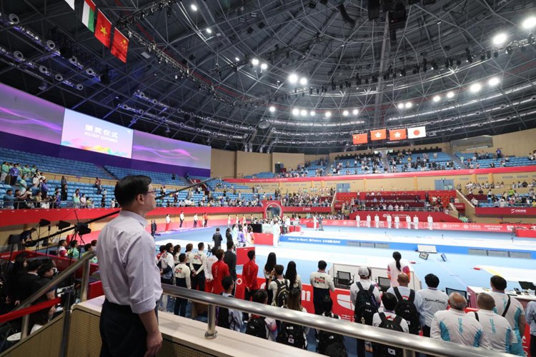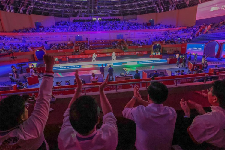 超哥去了觀看游泳、武術和劍擊賽事,身為氣功師傅的他,見到武術的運動員也以雙手抱拳打招呼。(木子)