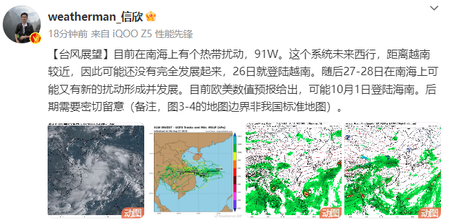 中國氣象頻道氣象分析師信欣表示,新颱風(fēng)可能於9月26日登陸越南。