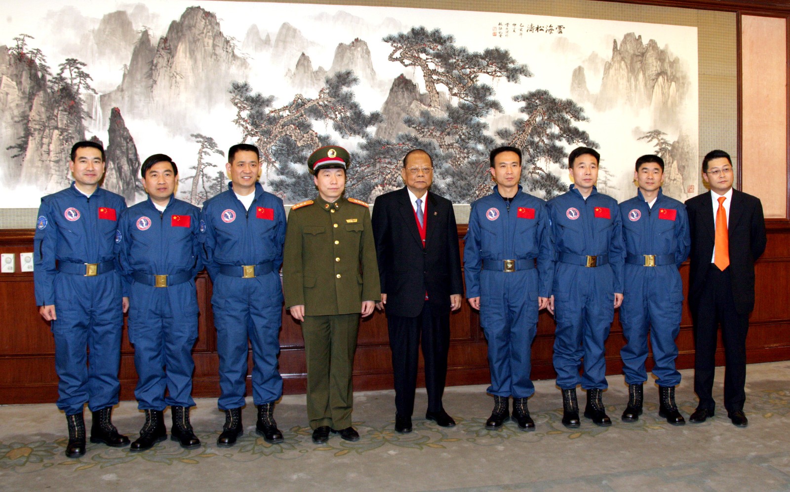 曾憲梓、曾智明父子與「神五」、「神六」、「神七」航天英雄合影。