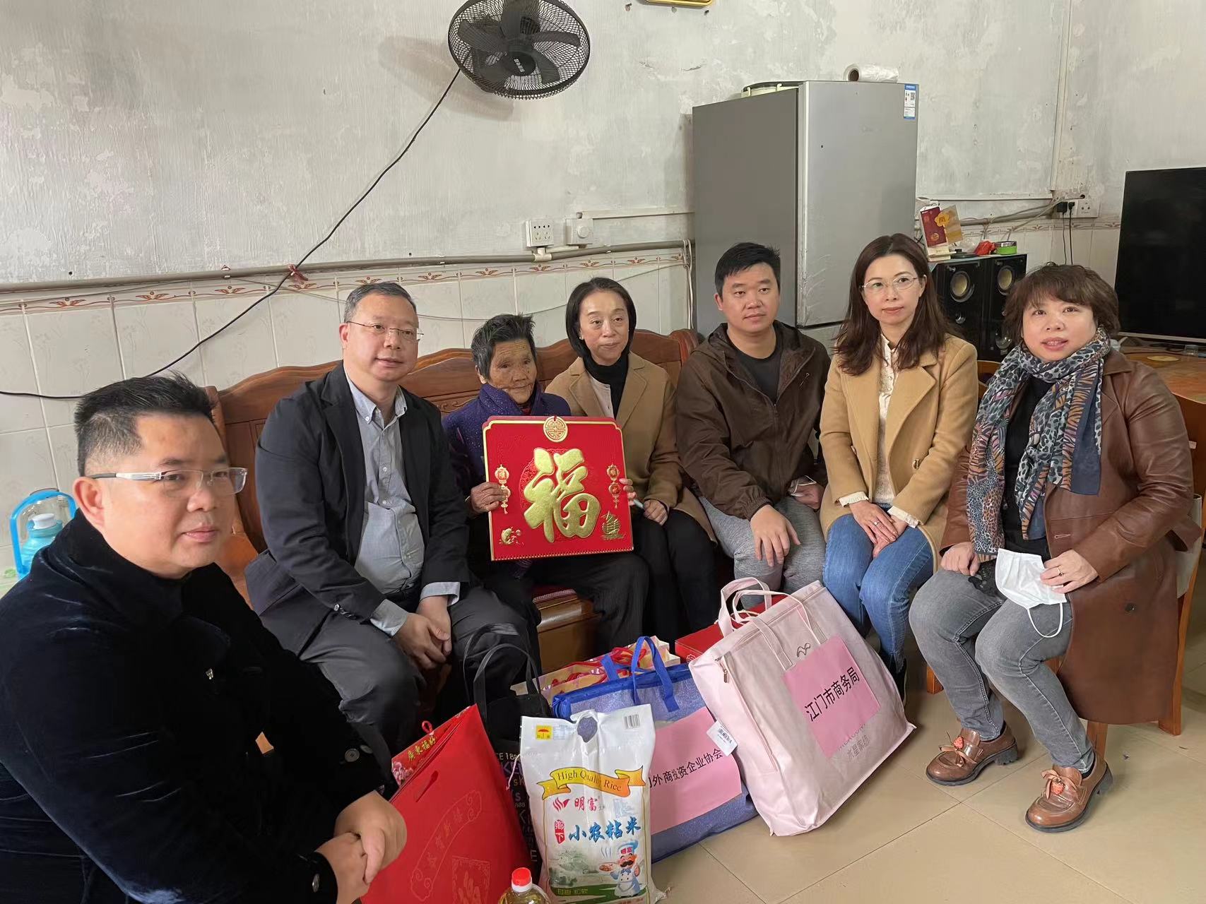 廣東新寶堂生物科技執(zhí)行董事關杰峰(右三)探訪及派發(fā)物資予基層家庭。
