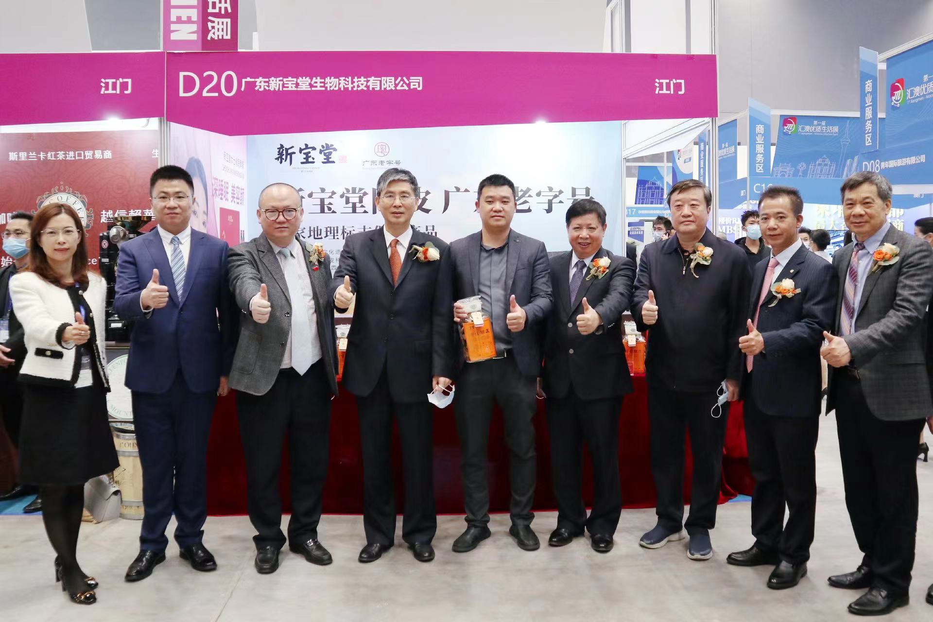 廣東新寶堂生物科技執(zhí)行董事關杰峰(左五)在展覽會上與參觀嘉賓合照。