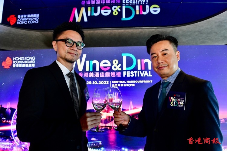 旅發(fā)局節(jié)目及旅遊產(chǎn)品拓展總經(jīng)理陳俊文(右)和香港酒評人協(xié)會主席劉偉民(左)。