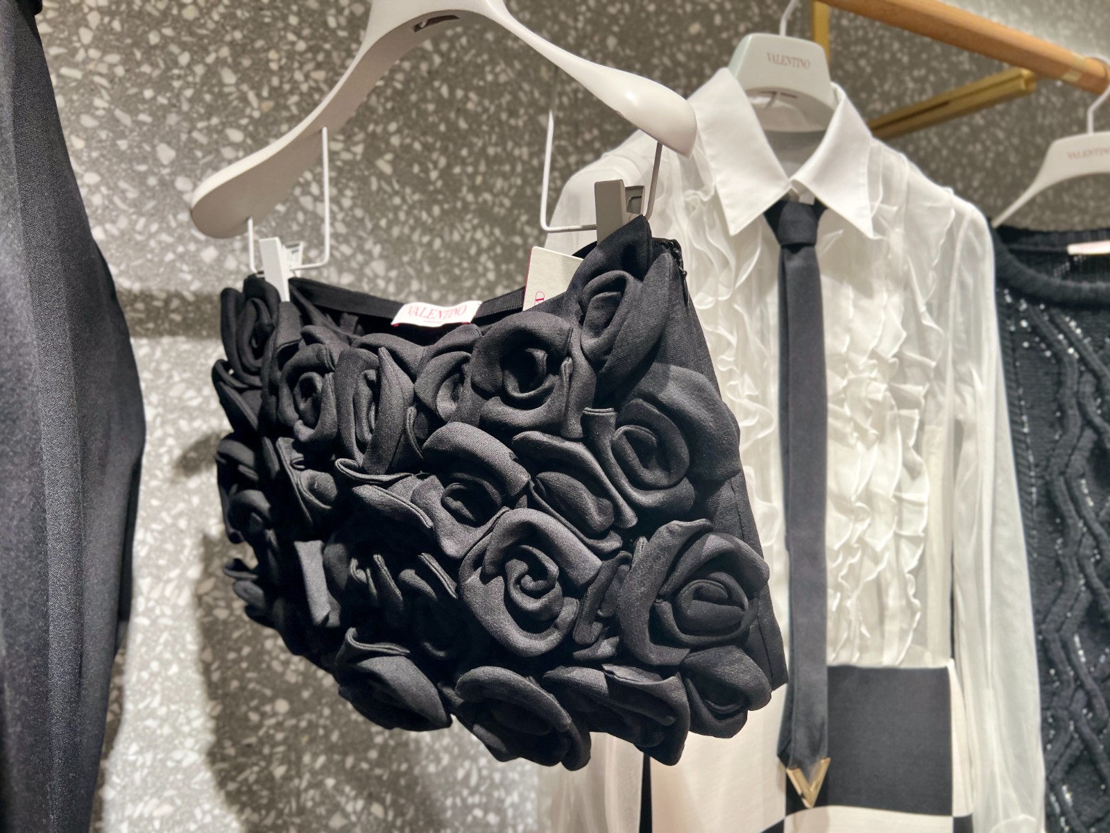 經(jīng)典玫瑰元素融入短裙設(shè)計(jì)中,搭配黑領(lǐng)帶蕾絲襯衫,穿出簡(jiǎn)約且現(xiàn)代風(fēng)的個(gè)性。