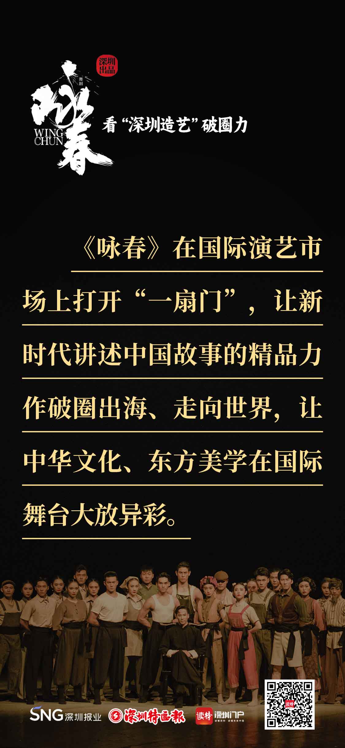 《詠春》強(qiáng)大的「破圈力」,凸顯「深圳造藝」的「硬實(shí)力」?!复骸怪_步步履不停,「舞武」生風(fēng)風(fēng)越高峰。這是深圳對文化高質(zhì)量發(fā)展之路的全新探索,是深圳文藝創(chuàng)作從「高原」向「高峰」奮力攀登的精彩縮影,也是深圳勇立潮頭、銳意創(chuàng)新、敢闖敢試、敢為人先的生動實(shí)踐。