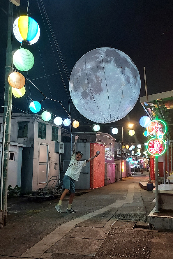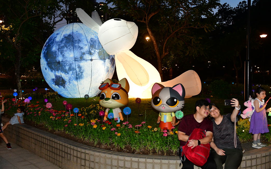 天水圍公園巨型月球和月兔,吸引遊人打卡。