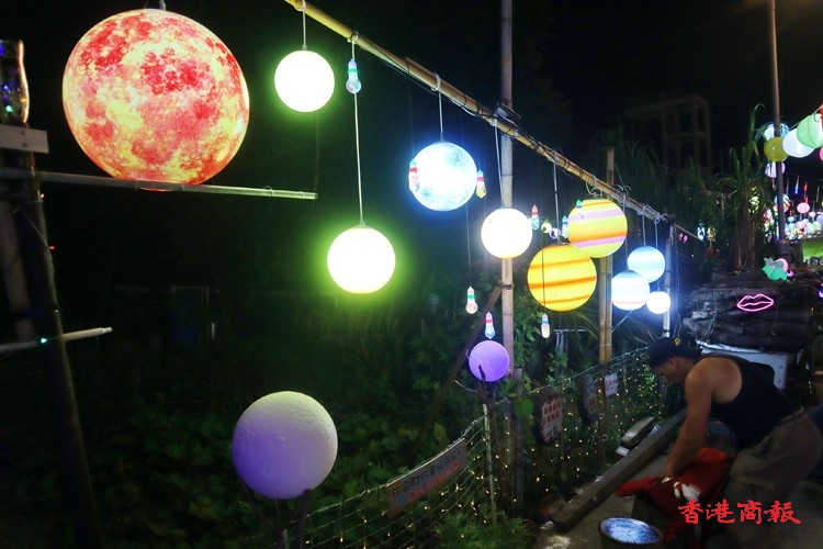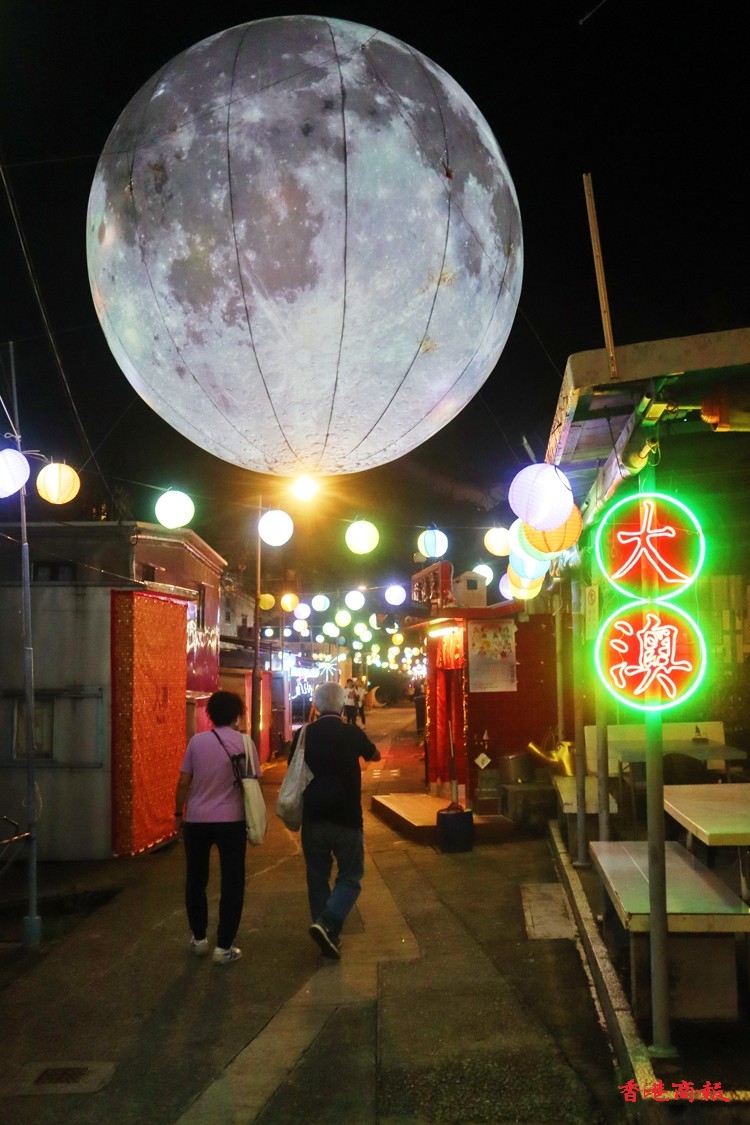 「大澳水鄉(xiāng)花燈節(jié)2023」由「大澳非茂里」民間組織策劃,在中秋節(jié)時(shí),吉慶街及其鄰近街巷都掛滿了由當(dāng)?shù)鼐用裼H手畫製的紙燈籠。當(dāng)夜幕低垂,五光十色的燈籠亮起,整個(gè)大澳都被浪漫的中秋氛圍包圍。這些充滿家鄉(xiāng)情懷的手繪燈籠不僅展現(xiàn)了居民的匠心獨(dú)運(yùn),更成為了遊客拍照的熱門景點(diǎn)。此外,還有巨型月亮裝置、多啦A夢(mèng)、孖寶兄弟、鯉魚旗、水母群等,為濃厚的節(jié)慶增添了更多燦爛的色彩,是中秋打卡好去處。(馮瀚文攝)