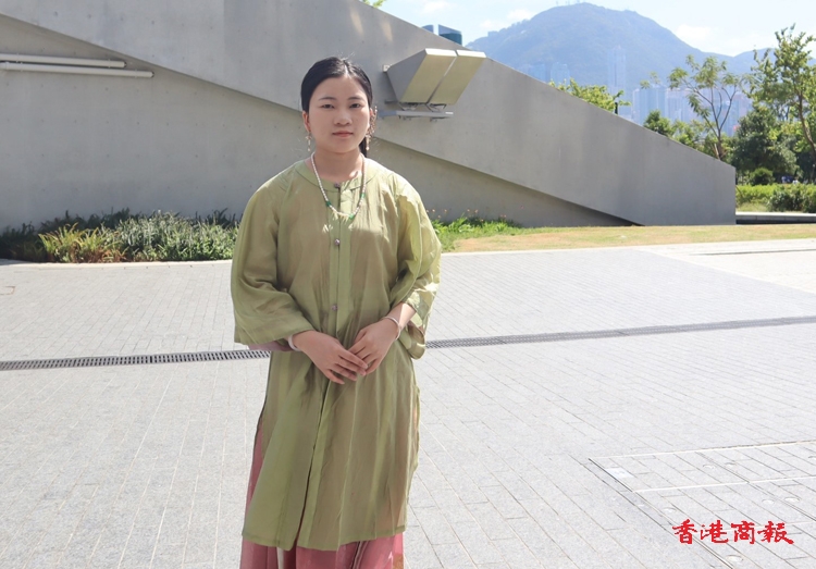 漢服愛(ài)好者張小姐大讚位於高鐵站旁邊的香港故宮交通方便。(謝謹(jǐn)伊攝)