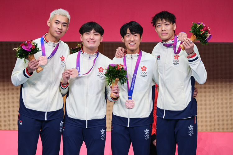 劍擊賽場(chǎng)今日同時(shí)舉行最後一日賽事,在男子重劍團(tuán)體賽,被列為二號(hào)種子直入8強(qiáng)在港隊(duì),以45比31擊敗烏茲別克,打入4強(qiáng),只是他們?cè)跍?zhǔn)決賽力戰(zhàn)以30比45負(fù)於哈薩克,未能晉身決賽,在不設(shè)季軍戰(zhàn)下,港隊(duì)首次拿下亞運(yùn)男重團(tuán)體賽銅牌,連計(jì)日前共奪1金1銀6銅的成績,香港劍擊隊(duì)在今屆亞運(yùn)共得9面獎(jiǎng)牌。