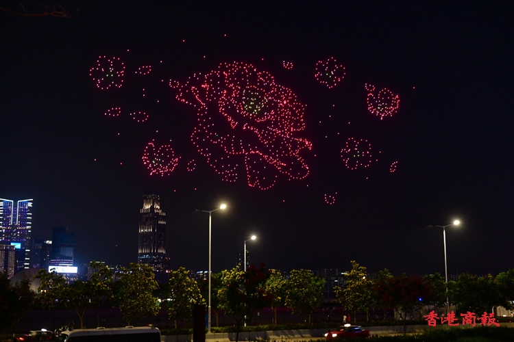 今晚8時(shí)15至8時(shí)45分,維港夜空上和深圳歡樂(lè)港灣共有2400架無(wú)人機(jī)用創(chuàng)意秀的形式展現(xiàn)中秋節(jié)和國(guó)慶節(jié)相關(guān)的造型和圖案,13種圖案中包括「海上升明月」、「嫦娥奔月」、「天安門(mén)城樓掛起大紅燈籠」、「中國(guó)地圖綻放盛世繁花」、「中國(guó)國(guó)旗及香港區(qū)旗」、「獅子山精神」、「深港兩地地標(biāo)」等。通過(guò)燈光和音樂(lè),以流動(dòng)的圖案,變幻的造型,呈現(xiàn)出獨(dú)具藝術(shù)性和創(chuàng)意性的視覺(jué)形象,讓香港和深圳市民充分體驗(yàn)傳統(tǒng)文化與現(xiàn)代科技的創(chuàng)新融合,點(diǎn)亮雙城夜空,為歡度中秋、國(guó)慶佳節(jié)的市民帶來(lái)一場(chǎng)美輪美奐的視覺(jué)盛宴。