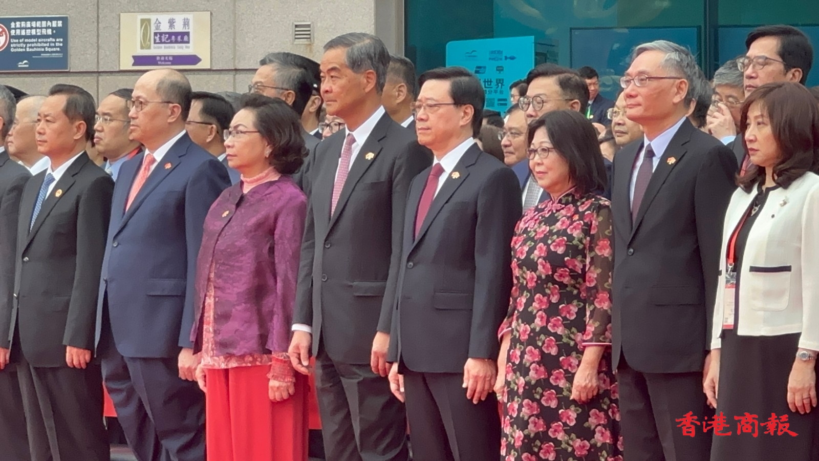 今日(10月1日)是中華人民共和國(guó)成立74周年國(guó)慶日,特區(qū)政府今早8時(shí)在灣仔金紫荊廣場(chǎng)舉行升旗儀式,全國(guó)政協(xié)副主席梁振英、香港特區(qū)行政長(zhǎng)官李家超、中央政府駐港聯(lián)絡(luò)辦主任鄭雁雄,駐港國(guó)家安全公署、外交部駐港特派員公署、解放軍駐港部隊(duì)負(fù)責(zé)人以及特區(qū)政府主要官員、行政會(huì)議成員和社會(huì)各界人士等出席。