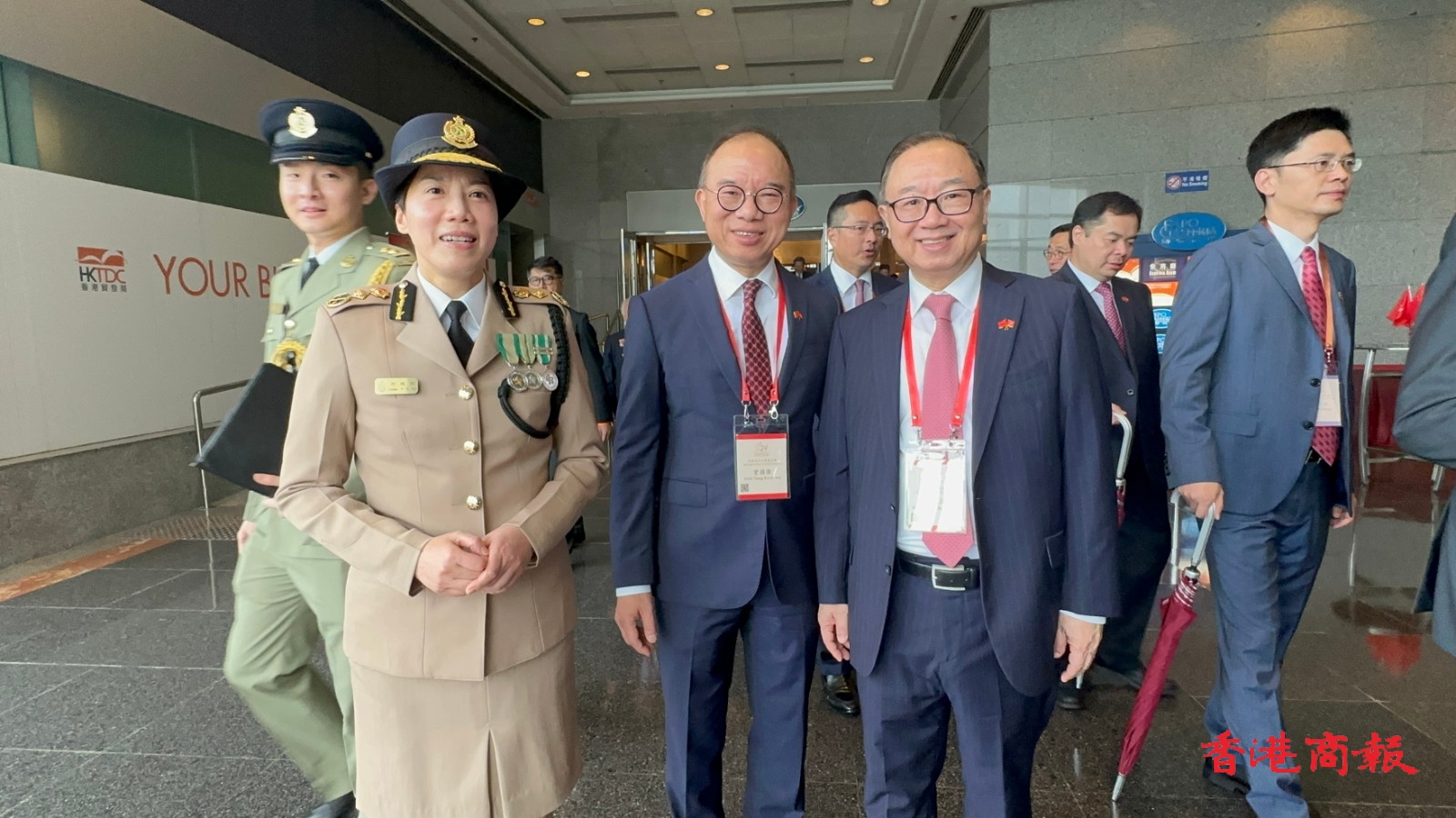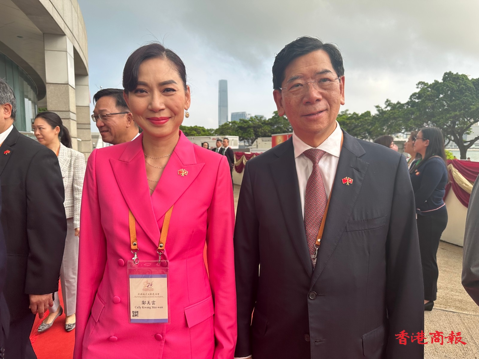 升旗儀式結(jié)束後,特區(qū)政府在會(huì)展舉行國(guó)慶慶祝酒會(huì),行政長(zhǎng)官為酒會(huì)主禮。