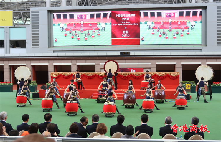 本地著名敲擊樂團(tuán)「激鼓」率先登場,演奏慷慨激昂的鼓樂,而中國香港跳繩總會(huì)中國香港代表隊(duì)上演大型花式跳繩,「激鼓」、跳繩隊(duì)同場獻(xiàn)技,場面非常熱鬧,為觀眾帶來賞心悅目的演出?,F(xiàn)任上海歌劇院藝術(shù)總監(jiān)暨國際級著名男高音魏松其後上臺(tái)獻(xiàn)唱經(jīng)典名曲《我和我的祖國》,並領(lǐng)唱國歌,同賀國慶。(文、圖:志誠)