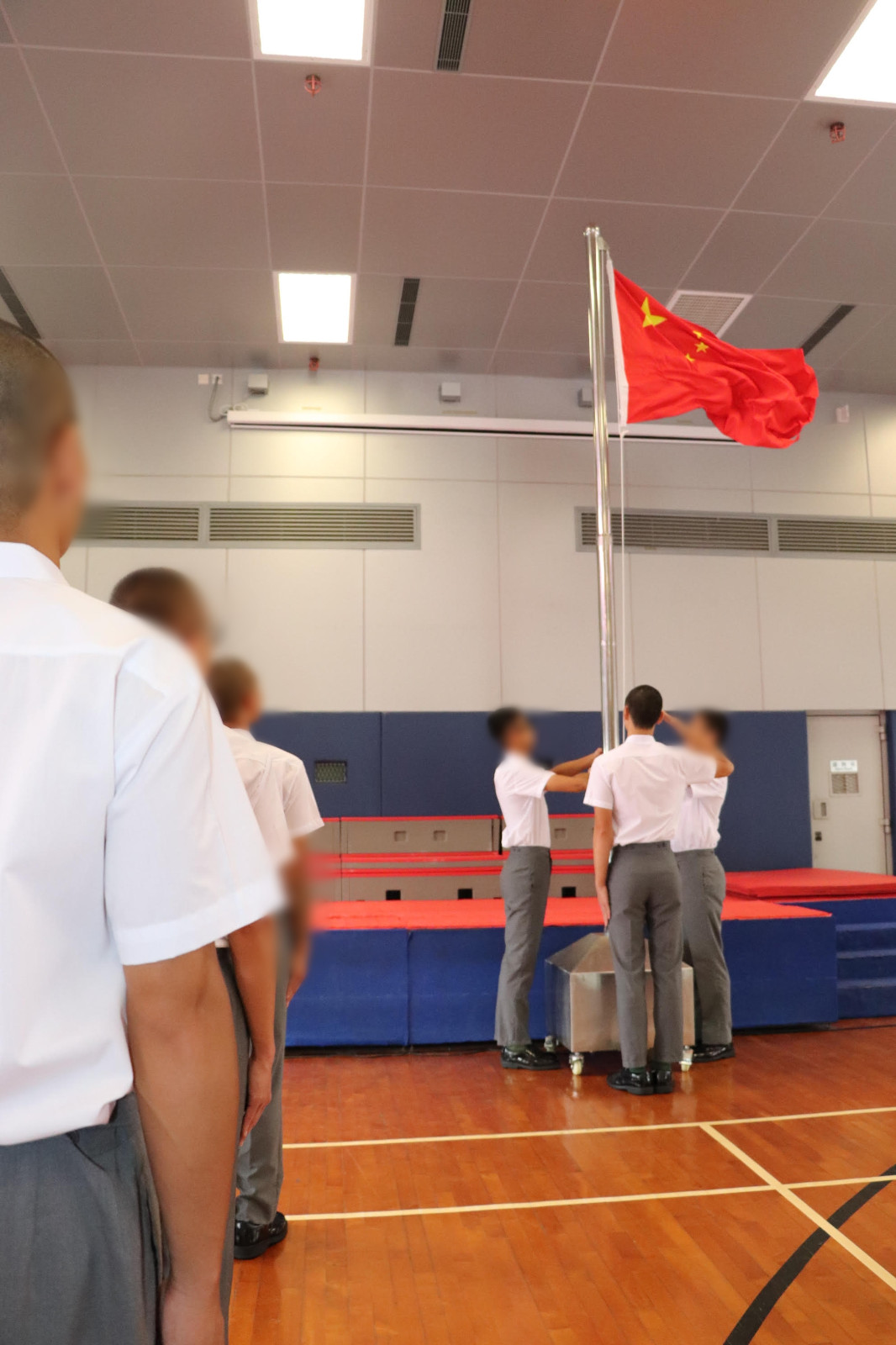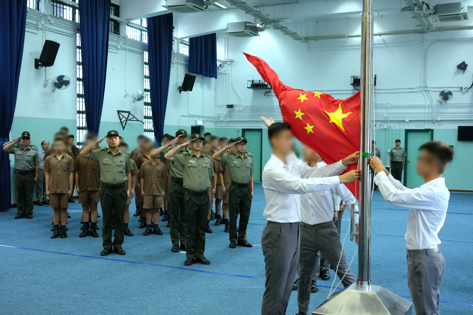 懲教署於壁屋懲教所、沙咀懲教所及勵(lì)敬懲教所成立青少年在囚人士升旗隊(duì)(升旗隊(duì)),並於今日(1日)國(guó)慶日首次安排升旗隊(duì)隊(duì)員擔(dān)任升旗手,在三間院所舉行升國(guó)旗儀式,進(jìn)一步加強(qiáng)青少年在囚人士的國(guó)民教育,提升他們的國(guó)家觀念、民族情感和增加他們的國(guó)民身份認(rèn)同。