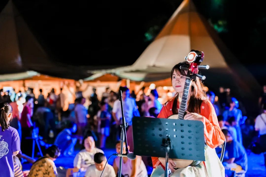 「樂(lè)動(dòng)龍城」2023年深圳龍崗國(guó)樂(lè)藝術(shù)周民樂(lè)專(zhuān)場(chǎng)音樂(lè)會(huì),在龍城公園蕉下日落營(yíng)地如期上演。深圳特區(qū)報(bào)記者 羅實(shí)宜 通訊員 韓怡萍 楊麗 翁若峰 攝